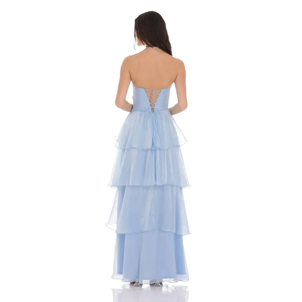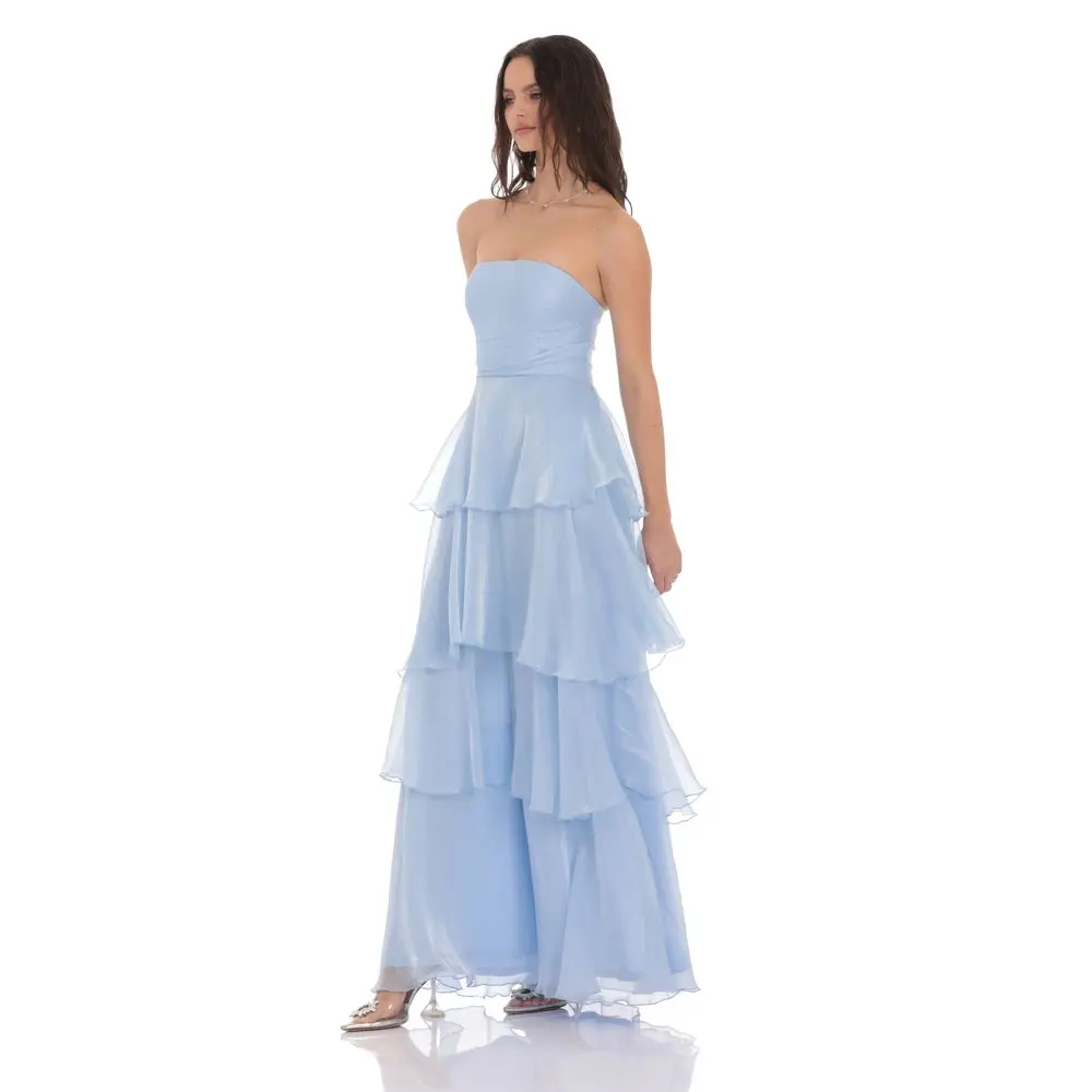 Corset Ruffle Strapless Maxi Dress in Sky Blue