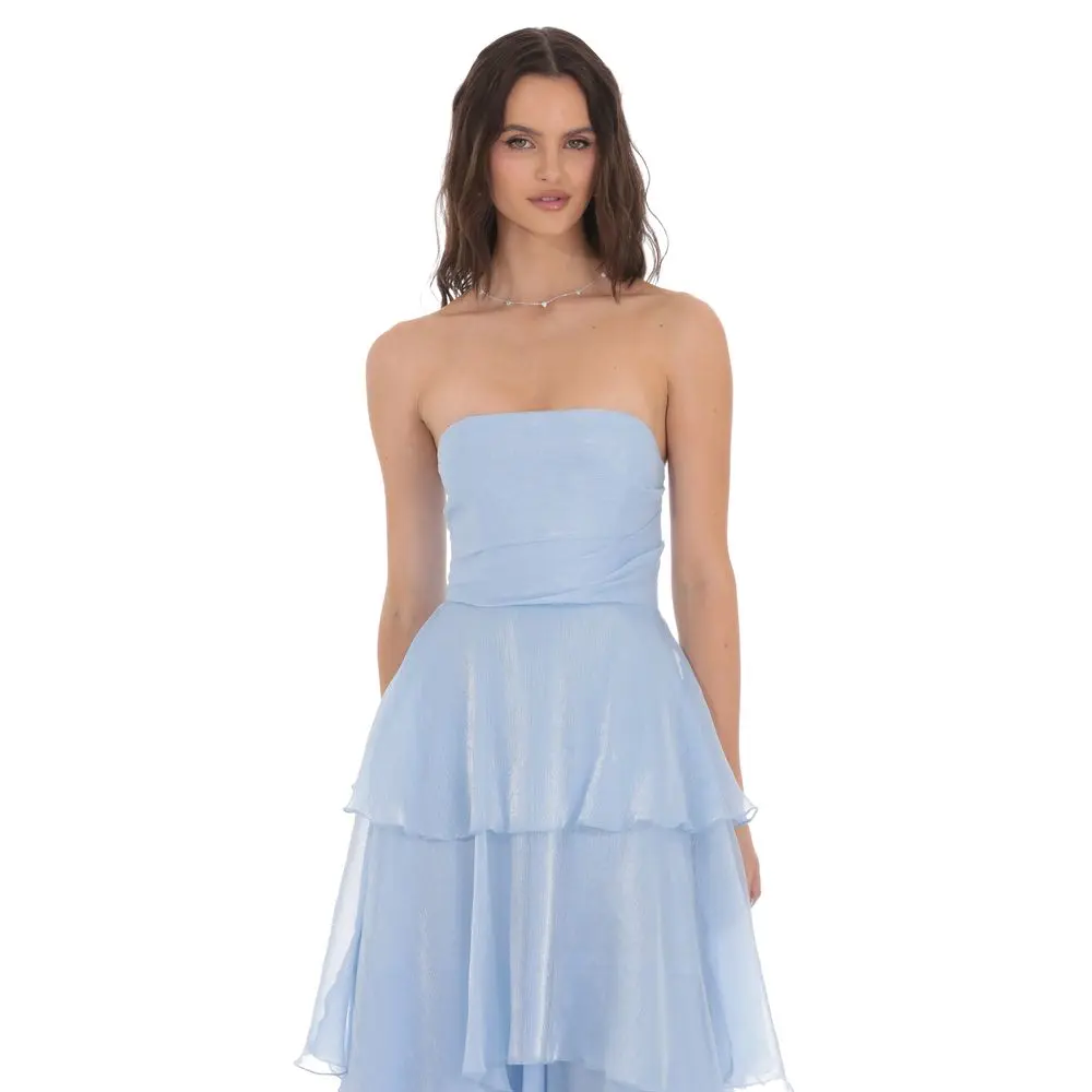 5. Corset Ruffle Strapless Maxi Dress in Sky Blue