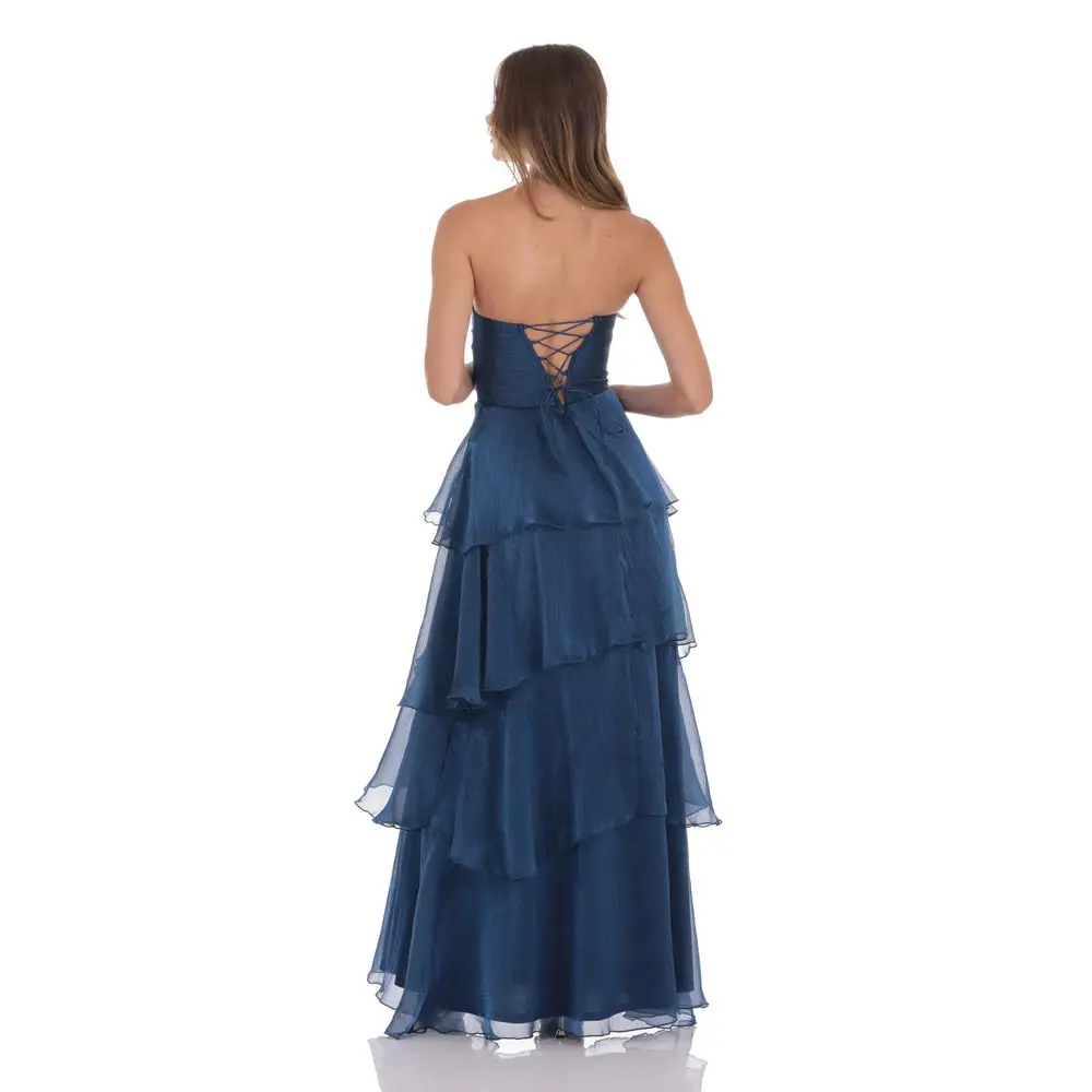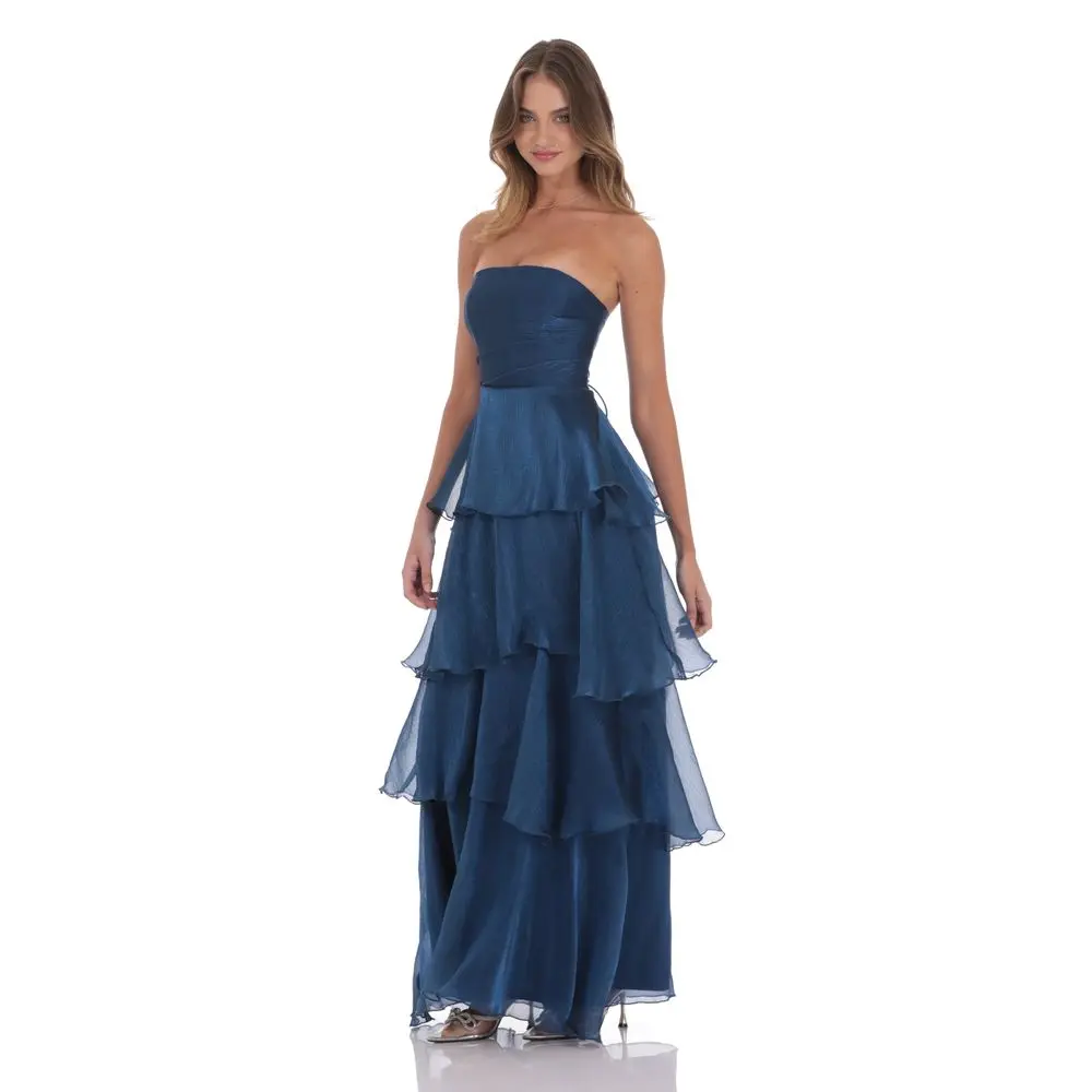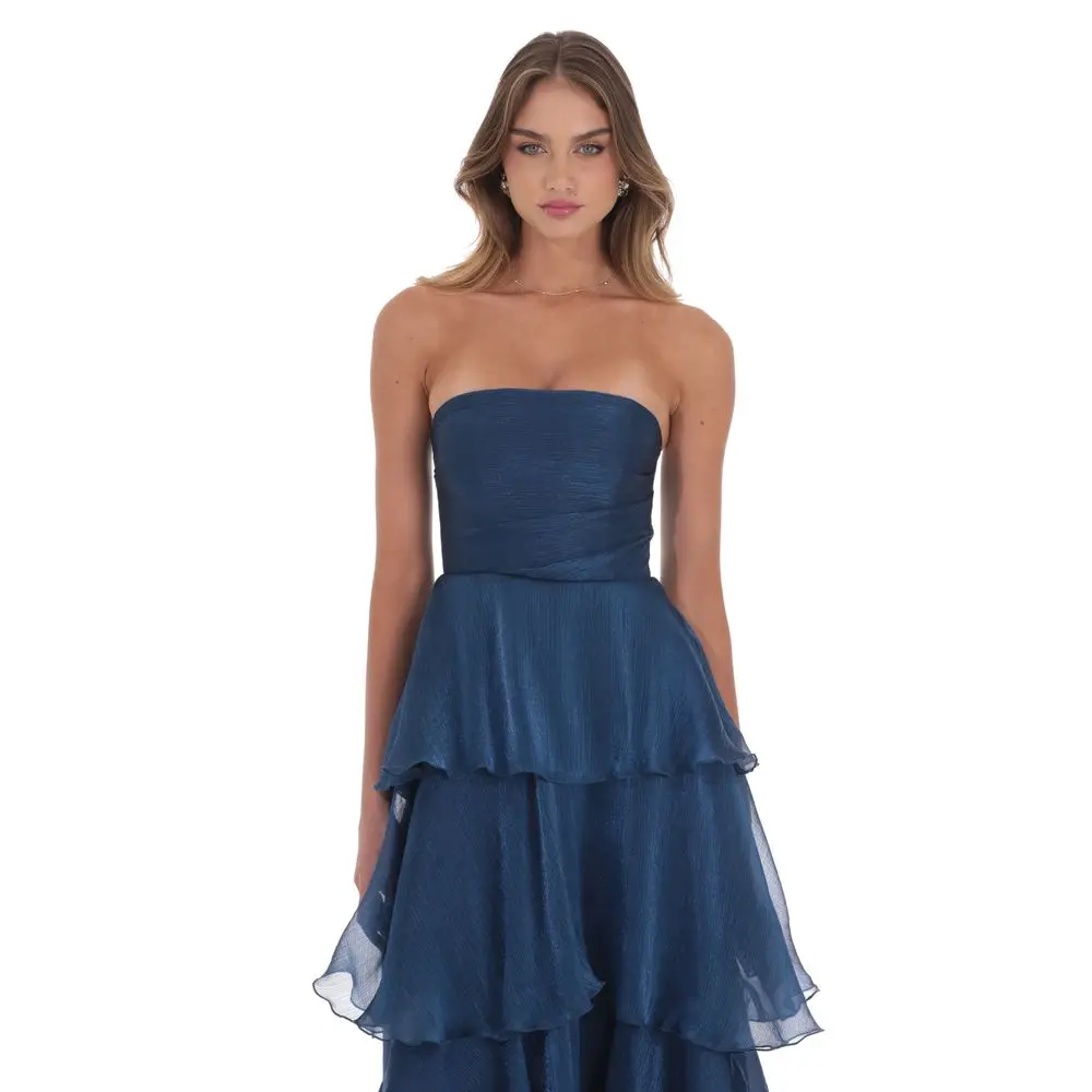 5. Corset Ruffle Strapless Maxi Dress in Navy