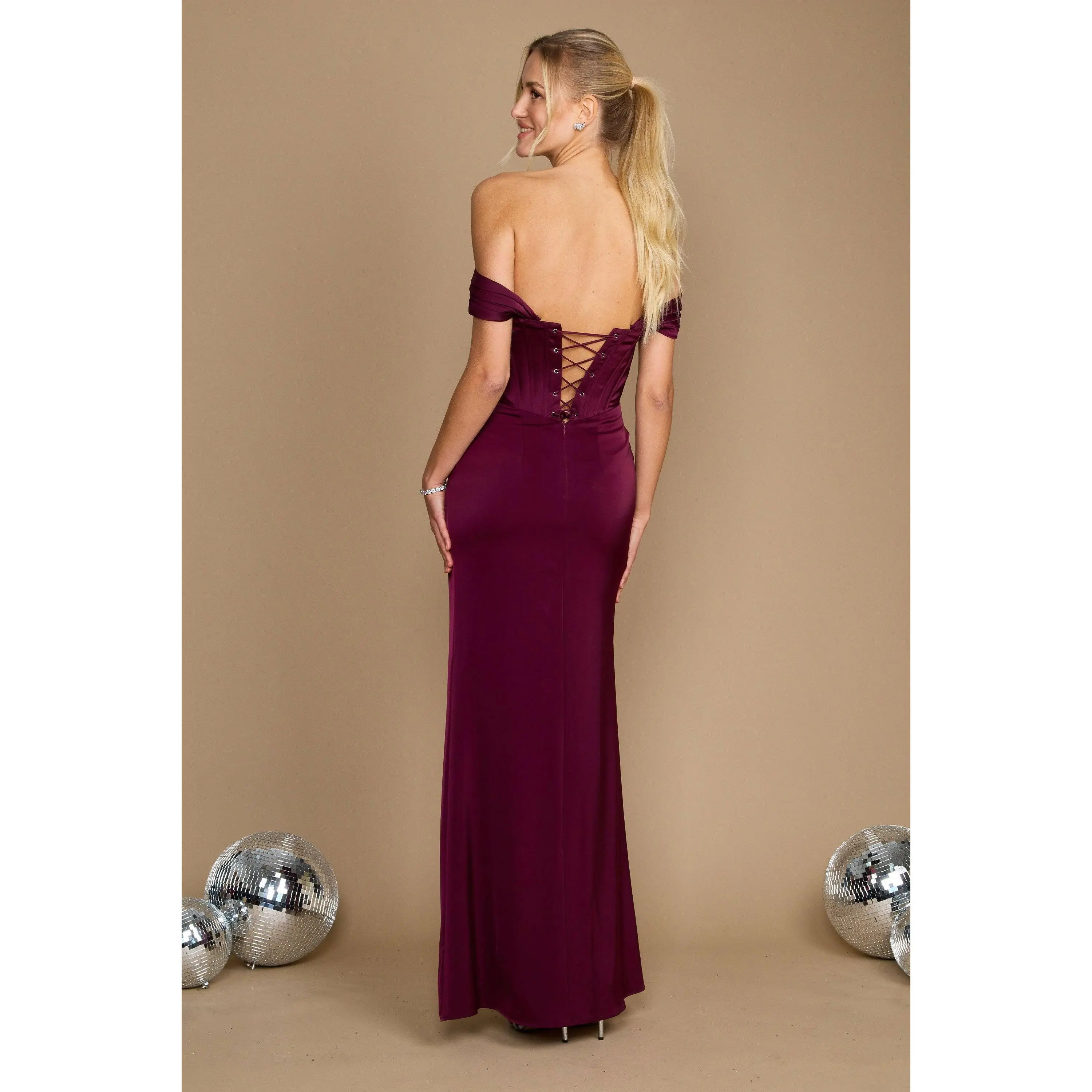 The ideal option for a night out is this gorgeous long formal dress. It is a corset satin evening gown with removable off-the-shoulder sleeves, a fitted sweetheart neckline, and a sweeping, flirtatious train. An unqualified success for special events like weddings, cocktail parties, or any other nighttime activity.