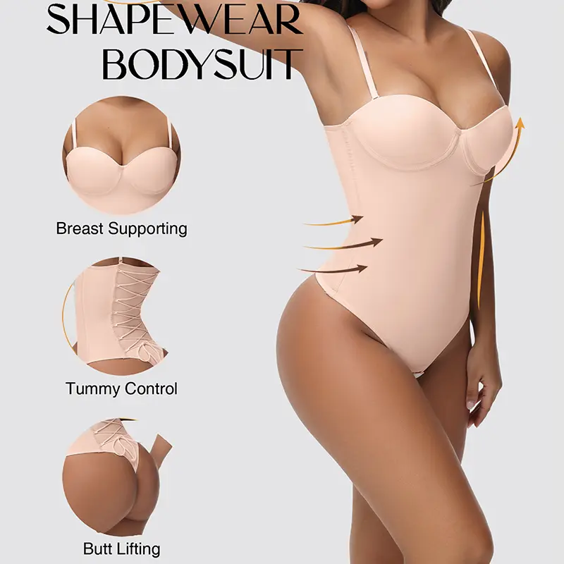 JOSHINE SHAPER Large Cup Corset Body Shapewear Women's Strapless Back Tie Basic Sleeveless Pleated Stretch Top Sexy Bodysuit