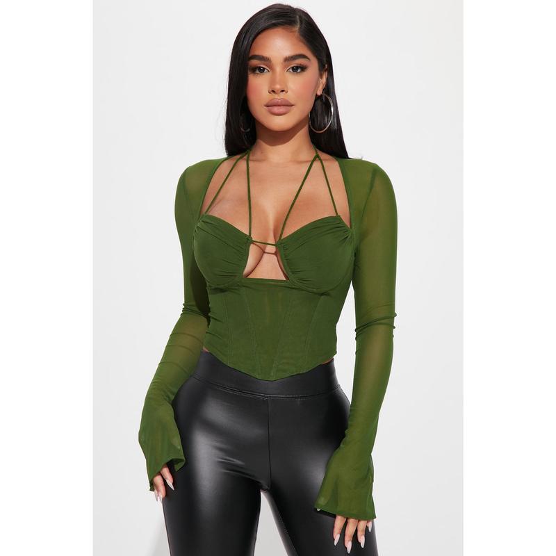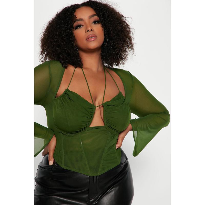Made for smaller breasts. Cup isn’t big enough to fully cover aerola (C cup-size). The underwire was already coming out of the fabric so not very well constructed, possibly because of the stretchy, net-like fabric. The ties from chest to neck are purely for looks only as they are stretchy and won’t truly tighten. Wanted to love this top. The color is just like the pic. I ordered a large (5’3 150 pounds). Fit was good except for chest.