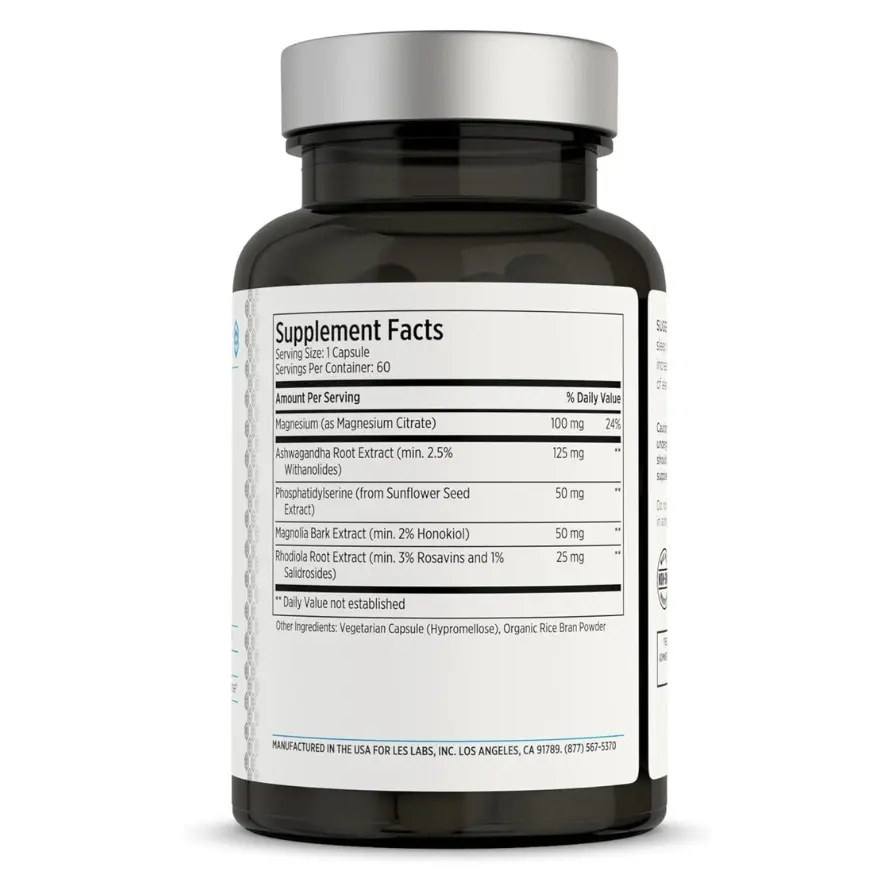 • Natural Ingredients: Phosphatidylserine, Magnesium, Ashwagandha, Magnolia Bark, Rhodiola Rosea.