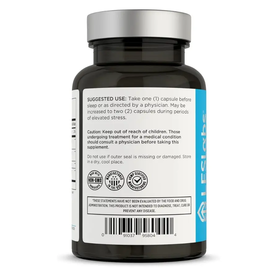 Discover LES Labs Cortisol Health, a natural supplement for stress relief and deep sleep. This 60-capsule formula promotes balanced cortisol levels and supports restful sleep. It includes essential ingredients like Phosphatidylserine, Magnesium, Ashwagandha, Magnolia Bark, and Rhodiola Rosea. Take one capsule before sleep or as directed by a physician. For elevated stress, increase to two capsules.