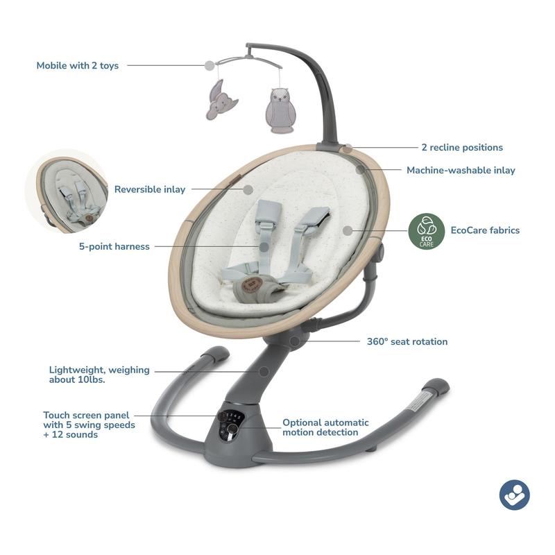 Discover the perfect blend of style and functionality with this automatic swing. Designed for modern families, this swing combines smart technology and soft materials to provide a comforting experience for your little one while complementing your home decor. From Maxi-Cosi.