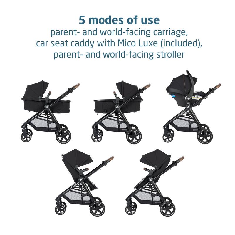 ·Five modes: parent-facing car seat caddy, reversible carriage, and reversible stroller