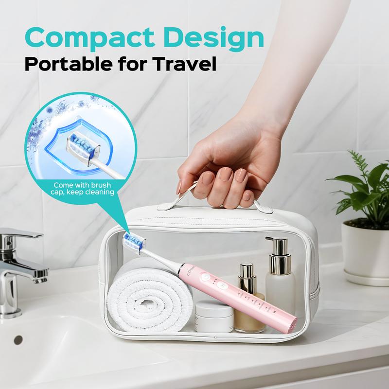The product comes with 2 hygienic brush head caps, keeping the brush heads clean during travel and storage. Additionally, we provide a 2-year extended warranty for your peace of mind. Available in 4 stylish colors (Black, Pink, Green, White), it makes a perfect healthy gift for family and friends.