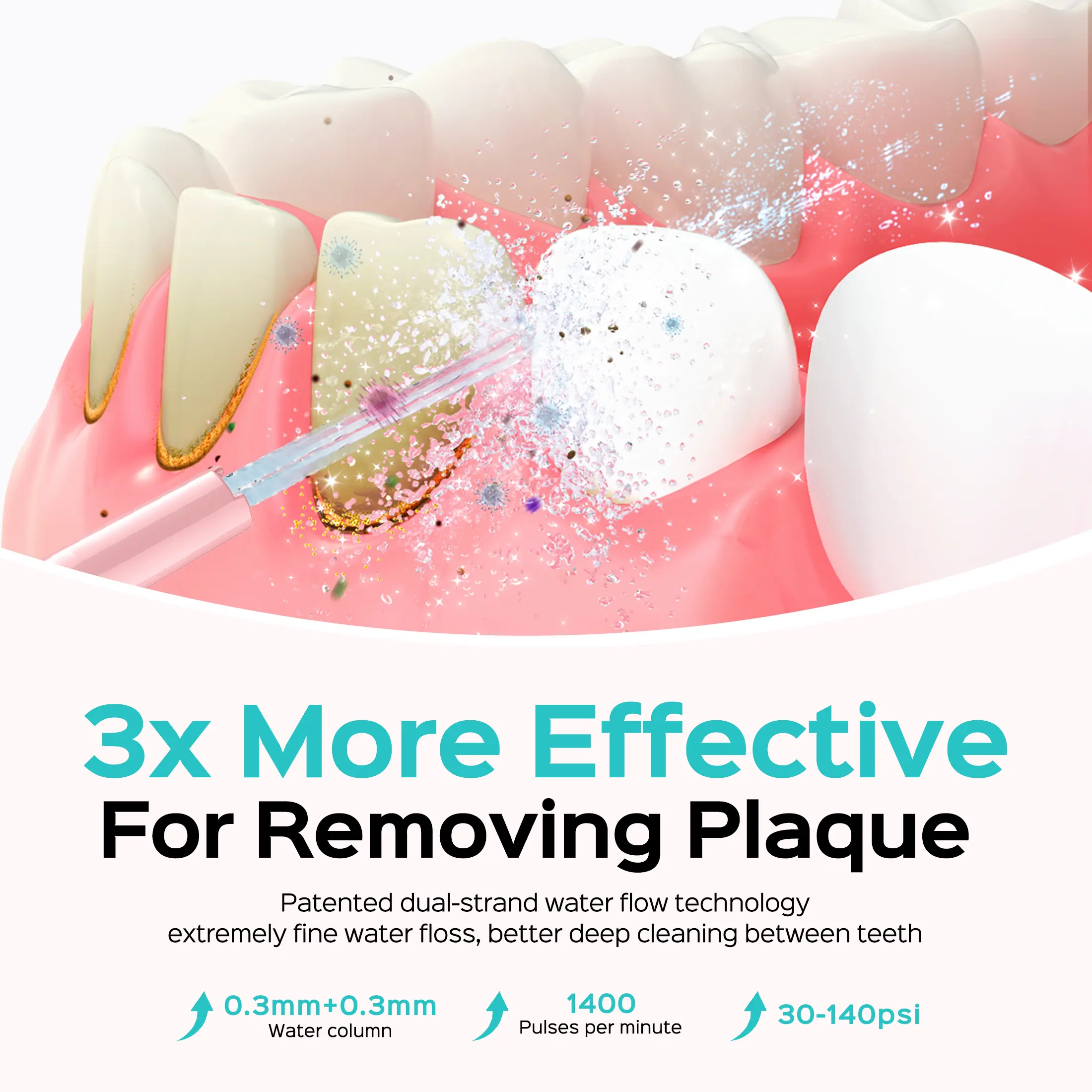 Developed with dental experts, this COSLUS C50 water flosser is clinically proven to be more effective than manual flossing at removing plaque and preventing cavities. Ideal for sensitive gums, braces, and daily use by all ages.