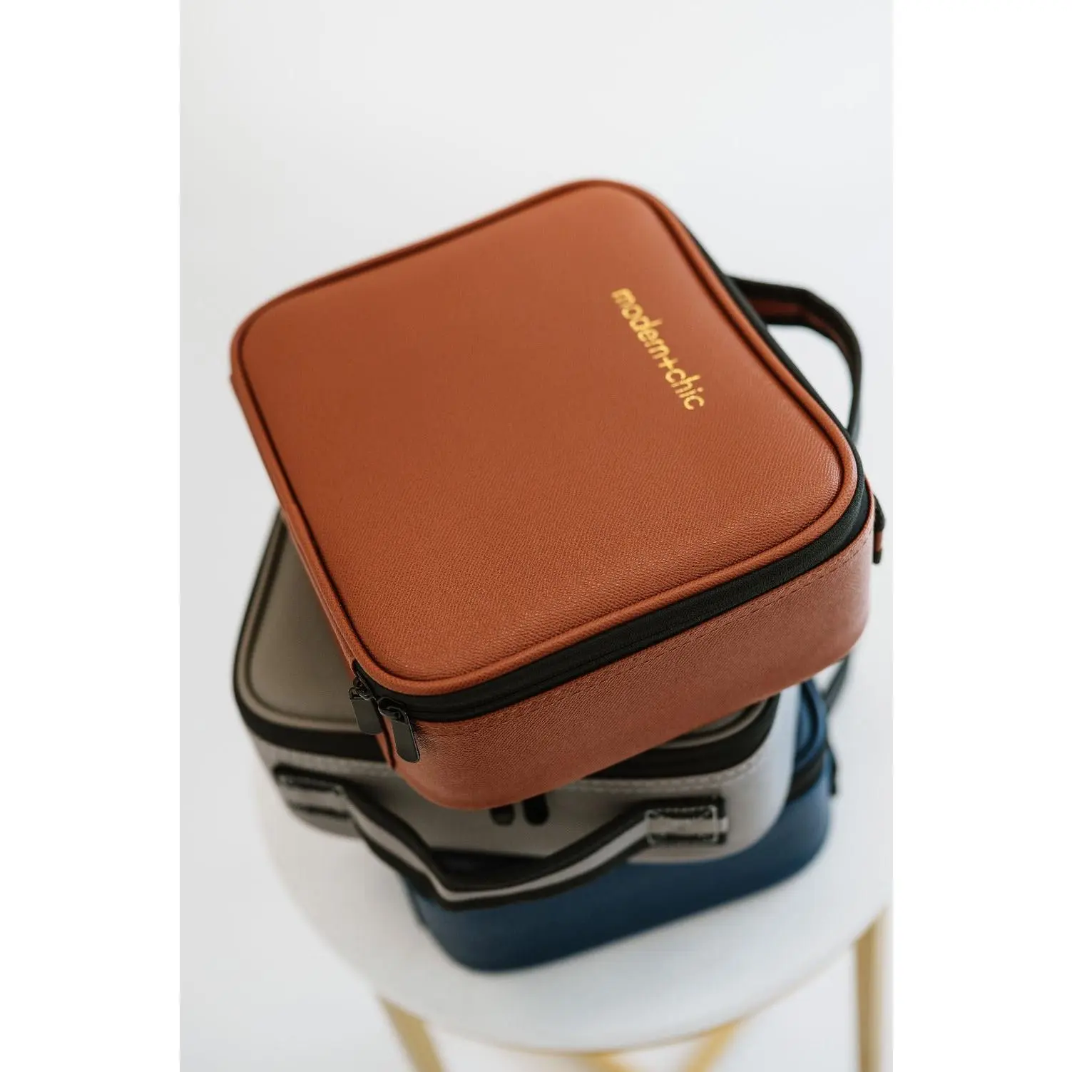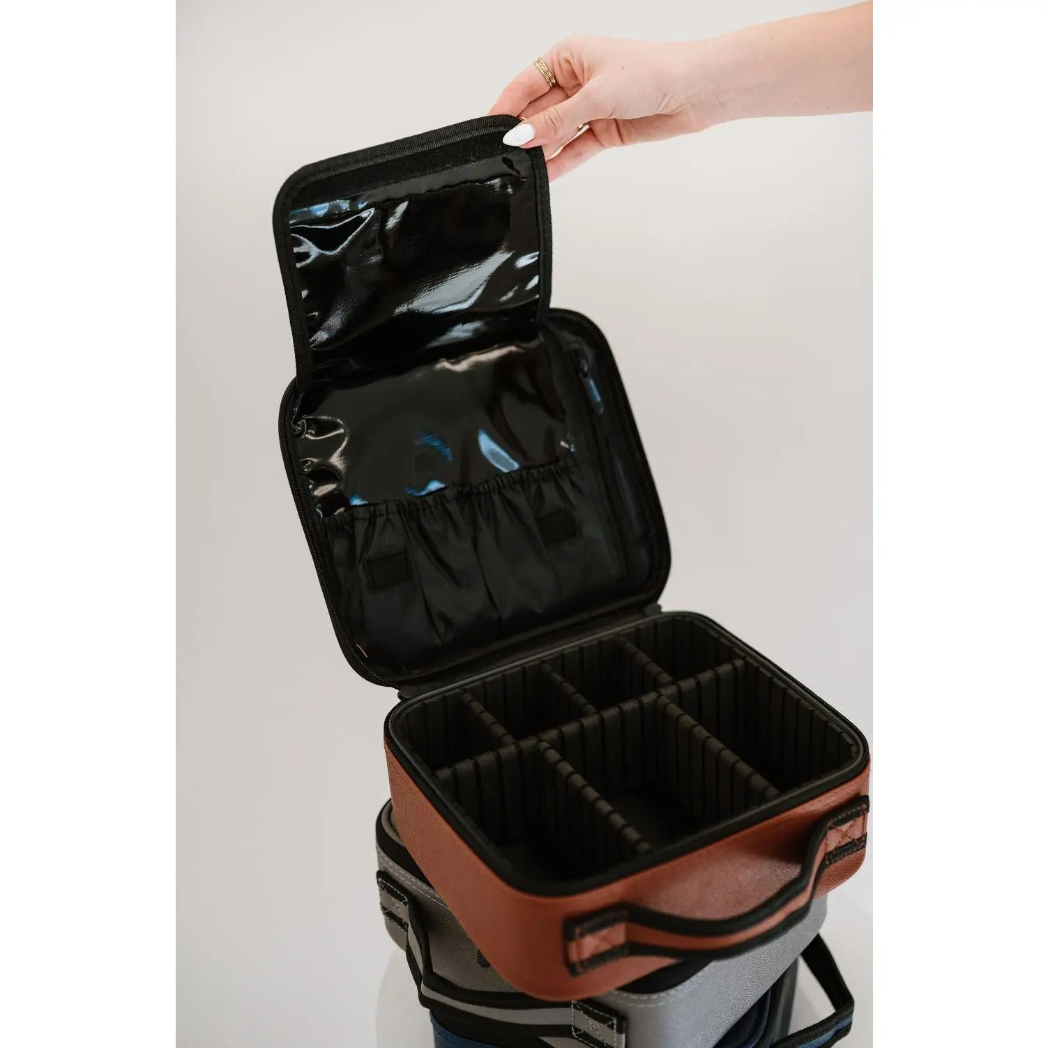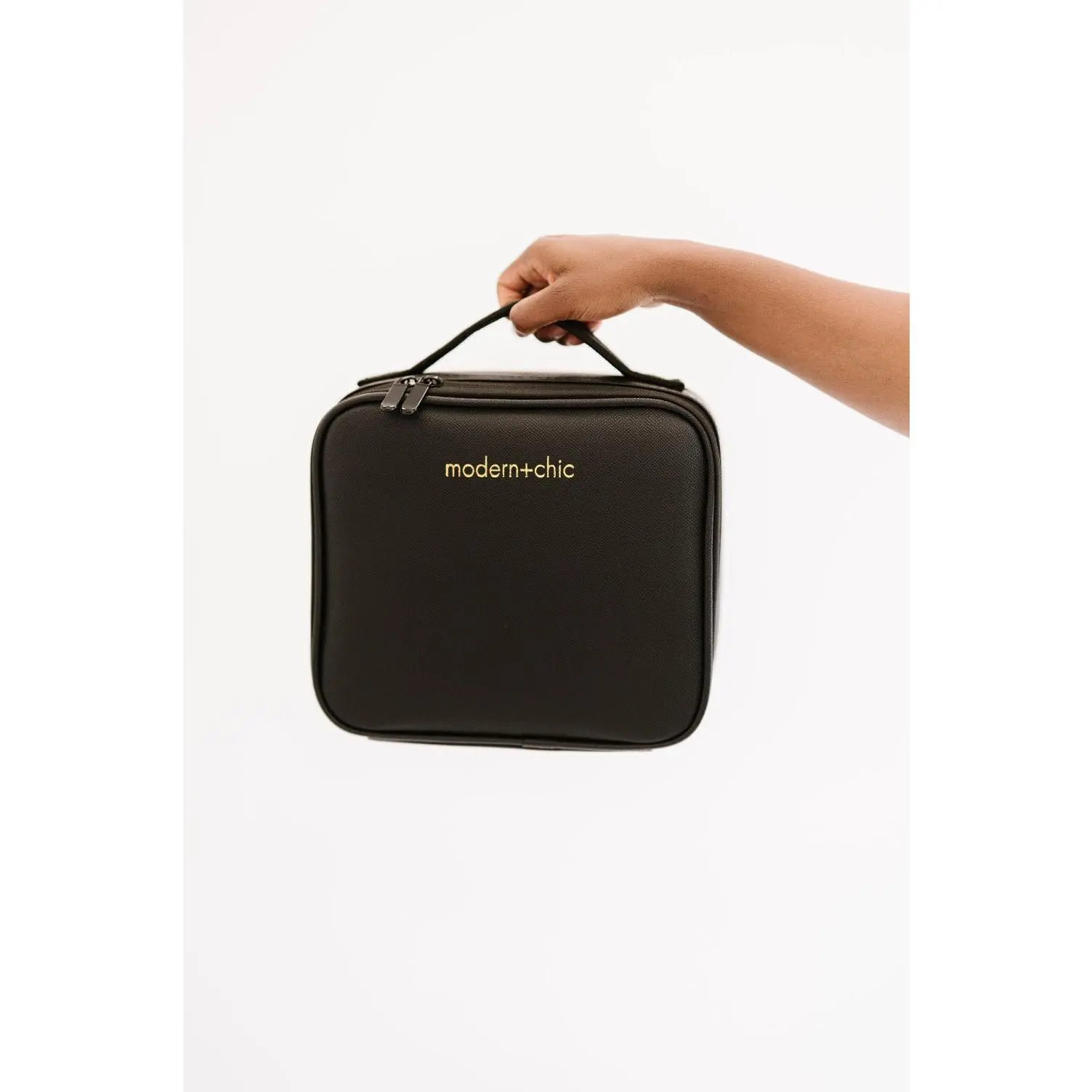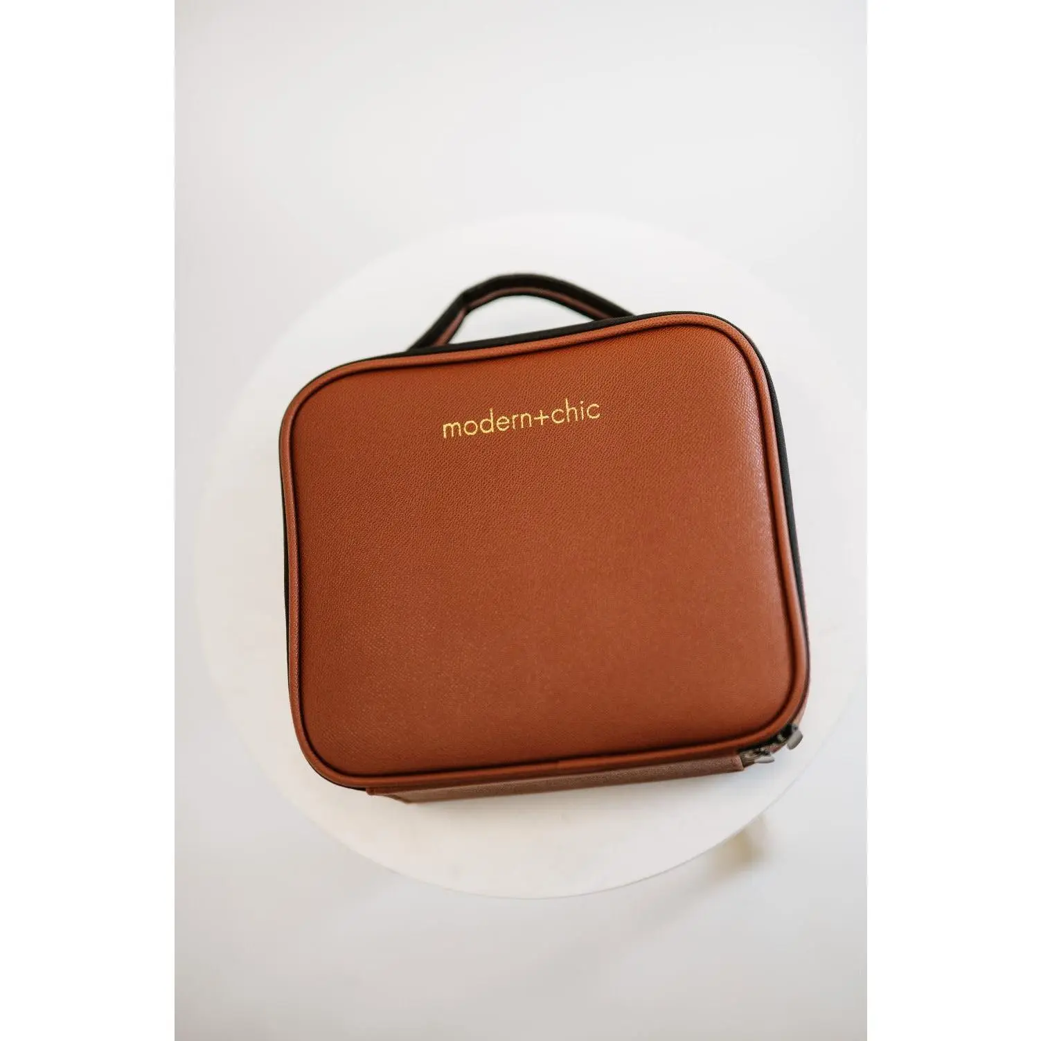 Your makeup storage should be as beautiful as your beauty products! This luxe carryall offers ample storage for brushes, bottles, palettes, and more. The exterior is made from smooth vegan leather, wipe-it-clean, and embossed with your favorite boutique’s logo.