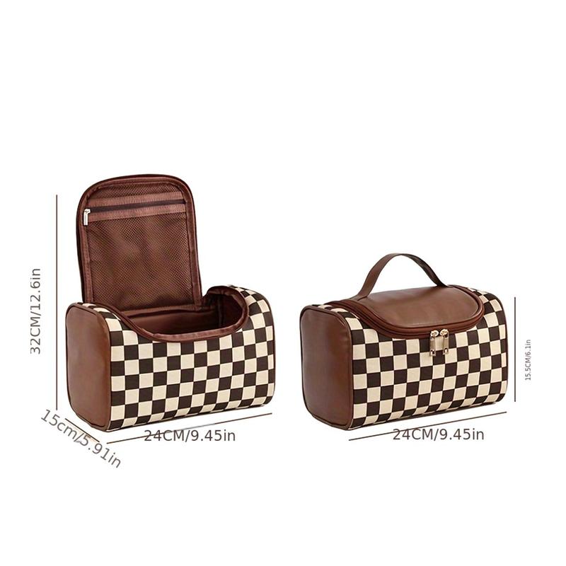 Checkerboard Pattern Makeup Bag, 1 Count Large Capacity, Portable Makeup Brush Organizer, Cosmetic Storage Bag for Home & Travel, Travel Cosmetic Bags