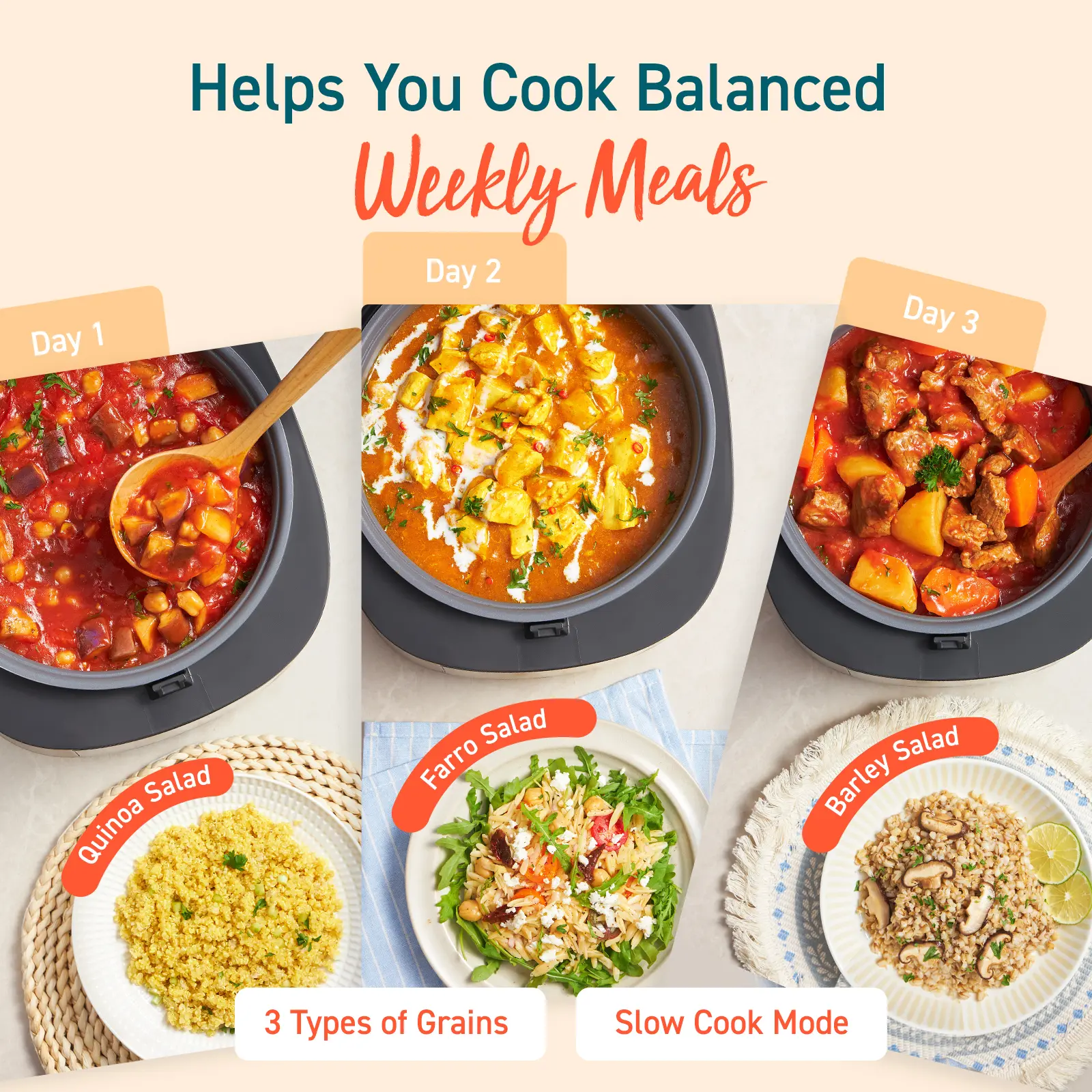 18 Functions Rice Maker: Choose from white and brown rice with texture options, grains, oats, steamed vegetables, slow-cooked soups, and sautéed rice.