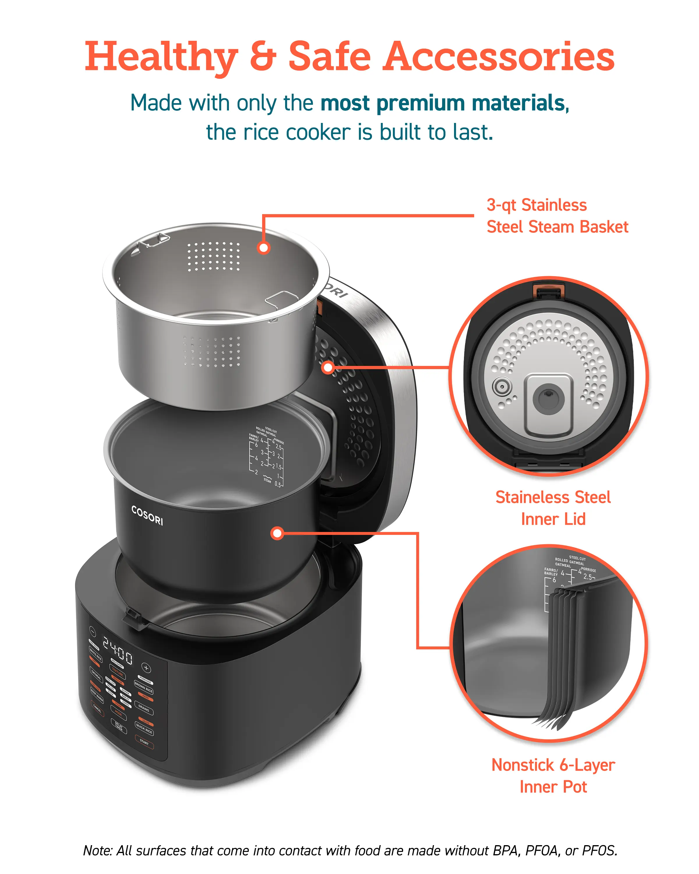 ·Dishwasher-Safe Accessories including the Detachable Inner Lid and Steam Cap