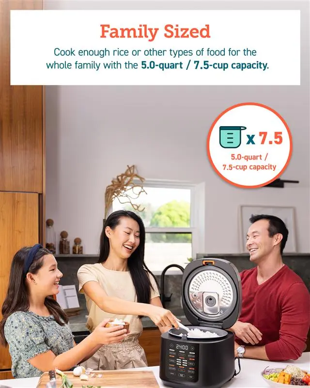 A guided touch display and clear measurement marks make operation effortless. All accessories, including the nonstick inner pot and removable lid, are dishwasher-safe for quick cleanup. The 5-quart nonstick pot is ideal for families, and with 50 chef-made recipes included, you’ll never run out of meal ideas.