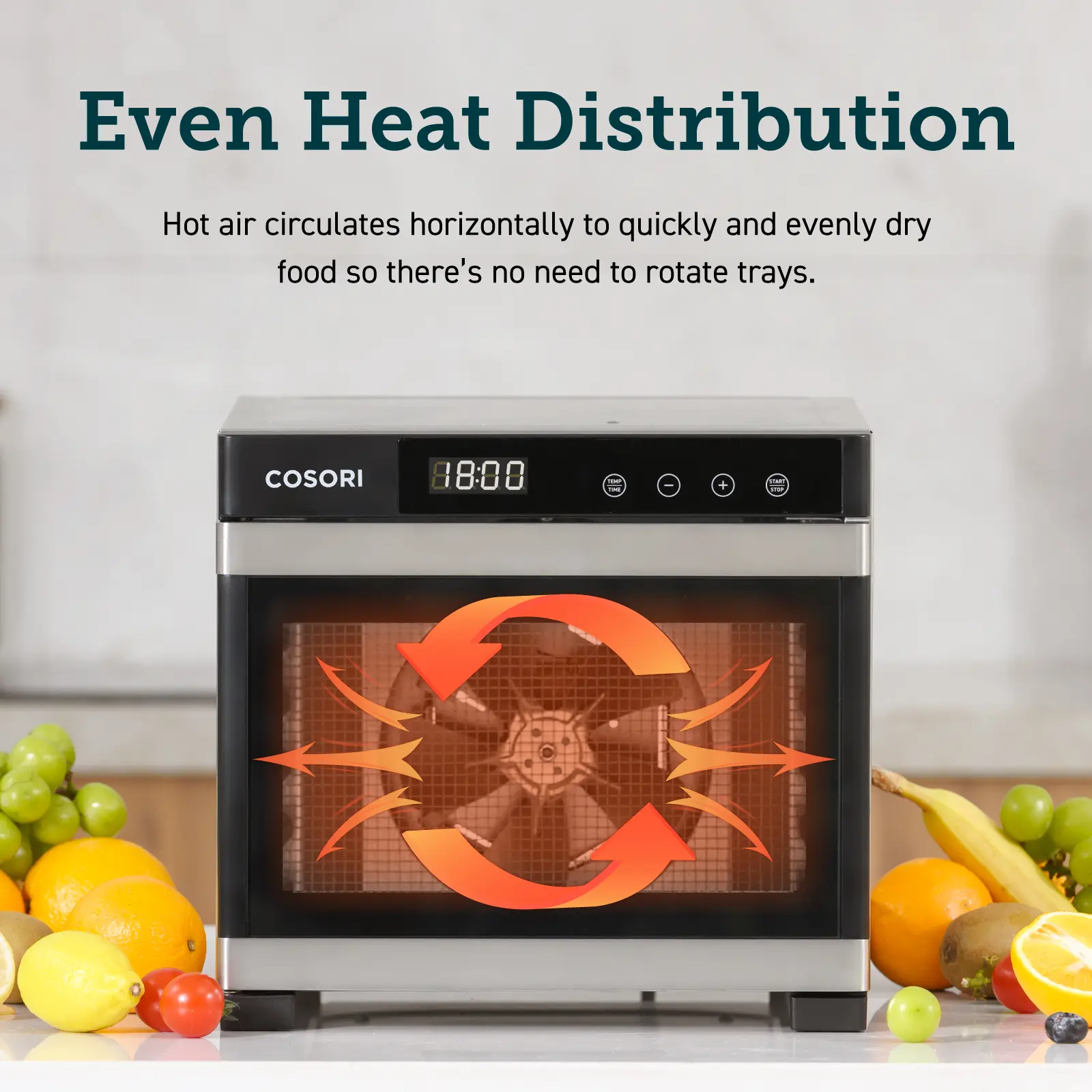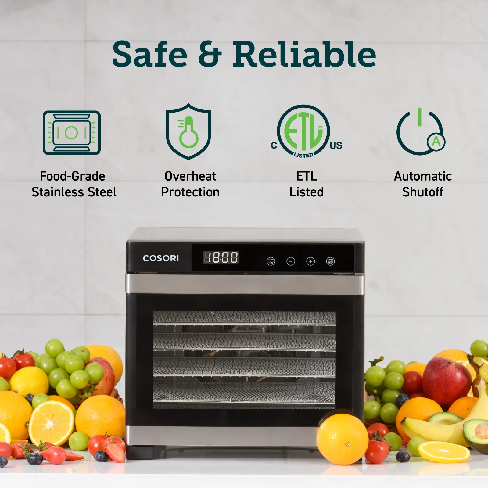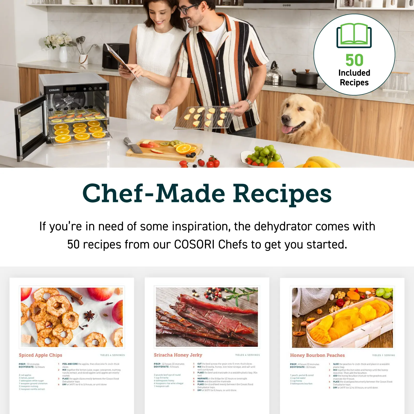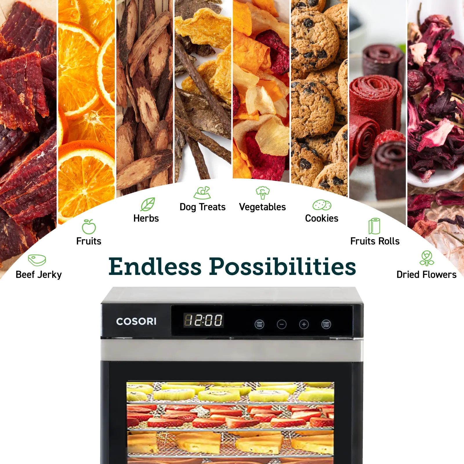 ·FULLY EQUIPPED: Comes with 6 dishwasher-safe trays, 1 mesh screen, 1 fruit roll sheet, 1 user manual, and a 50-recipe cookbook. Explore additional accessories by searching for 'COSORI Dehydrator Accessories', or 'C267-2MS', 'C267-2FR', 'C267-2ST'