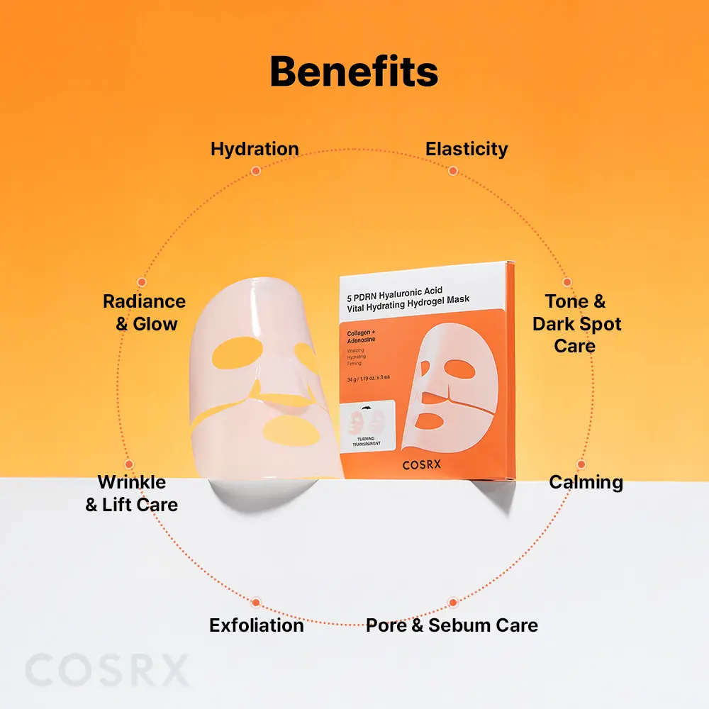 This hydrogel mask, formulated with 5 PDRN and 8 types of Hyaluronic Acid, turns transparent as it delivers active ingredients onto the skin.