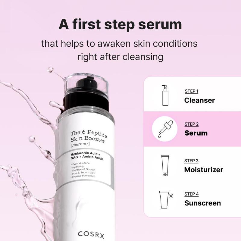 The 6 peptide skin booster contains 6 multi peptides that boost overall skin condition such as pore & sebum, firmness, fine lines, skin texture, skin tone and soothing. It is perfect to use as the first step of skincare routine to prep and boost.