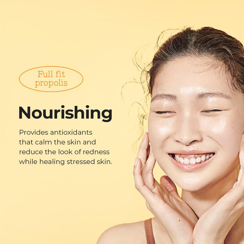 Moisturizing cream with high percentage of black bee propolis complex and antioxidants. Its light-weight, gel-like cream texture absorbs effortlessly onto skin, allowing you to use any circumstances you want. Makes your skin more plump and hydrated when using with Full fit Propolis toner and ampoule.