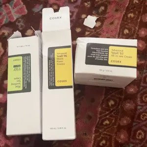 Elevate your skincare routine with the CosRX Bundle featuring Snail Essence, All In One Cream, and Aloe Suncream. This trio is designed to provide lightweight moisture and nourishment for your skin.