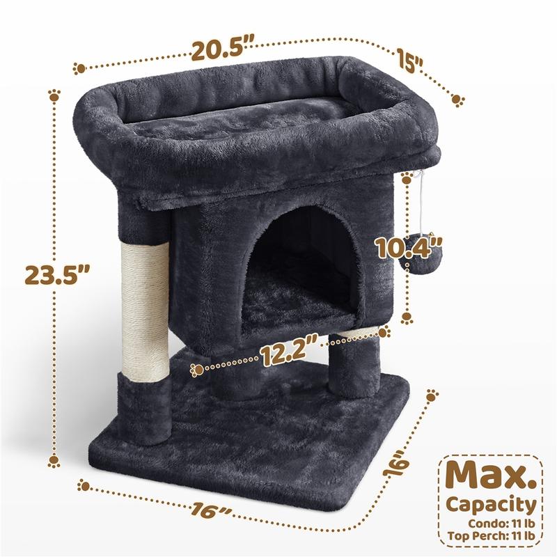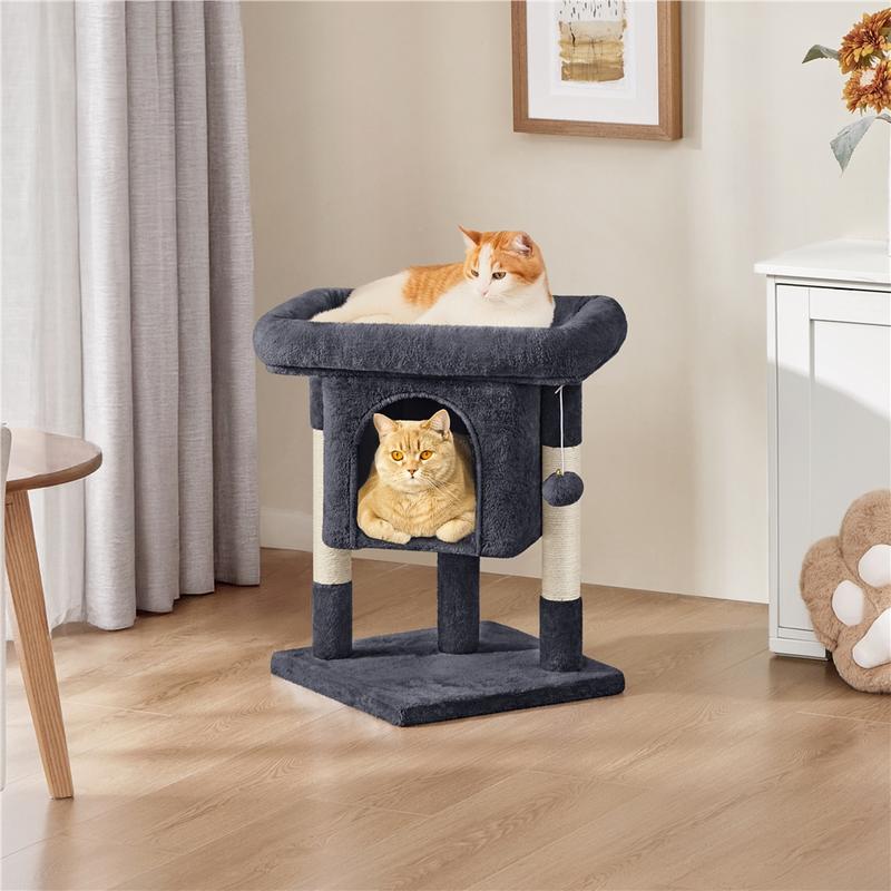 Give your cats cozy comfort and nonstop fun with this 2-level cat tree! It comes with a plush wide perch, a comfy elevated condo, and two scratching posts—perfect for lounging, playing, and scratching. Made with sturdy, durable materials and wrapped in soft plush, it’s warm, comfy, and built to last. Its compact, modern design fits beautifully in any room, especially apartments or small spaces.