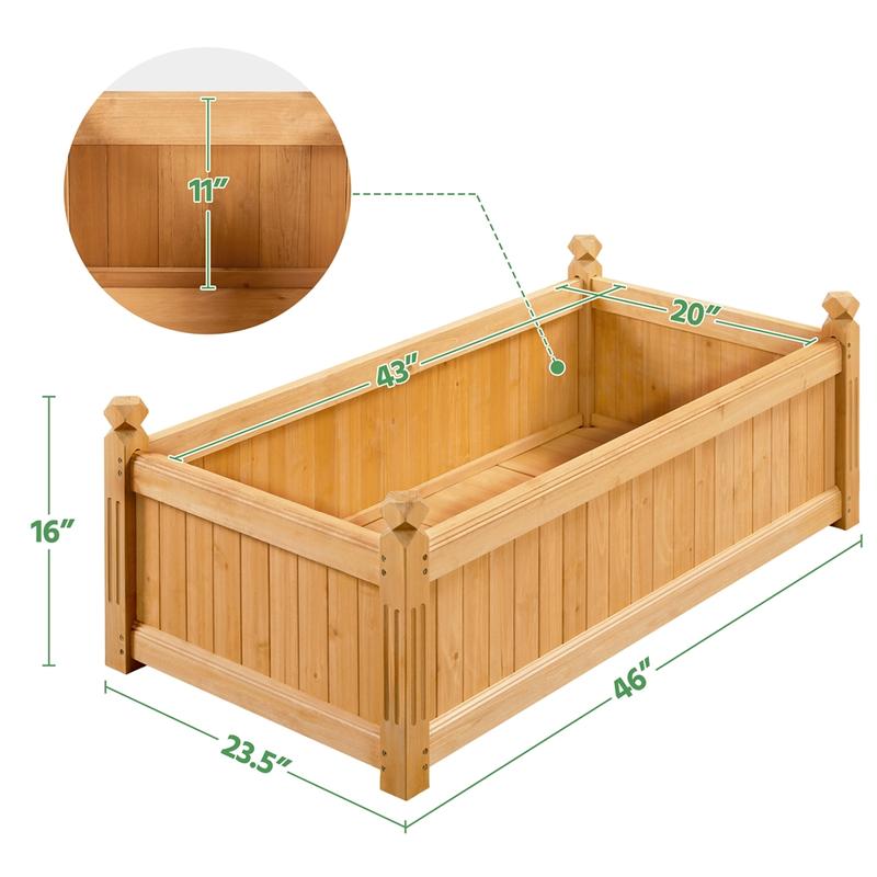 Gardening is a wonderful stress reliever, and this raised garden bed is the perfect pick to create your dream backyard garden! Crafted from handpicked natural fir wood, it measures 46″L ×23.5″W ×16″H and offers ample growing space for your vegetables, flowers and all other plants. Meticulously sanded for a splinter-free smooth surface, this planter box is ideal for all your planting needs. Simple assembly is required, and the package comes with clear instructions and all necessary screws.