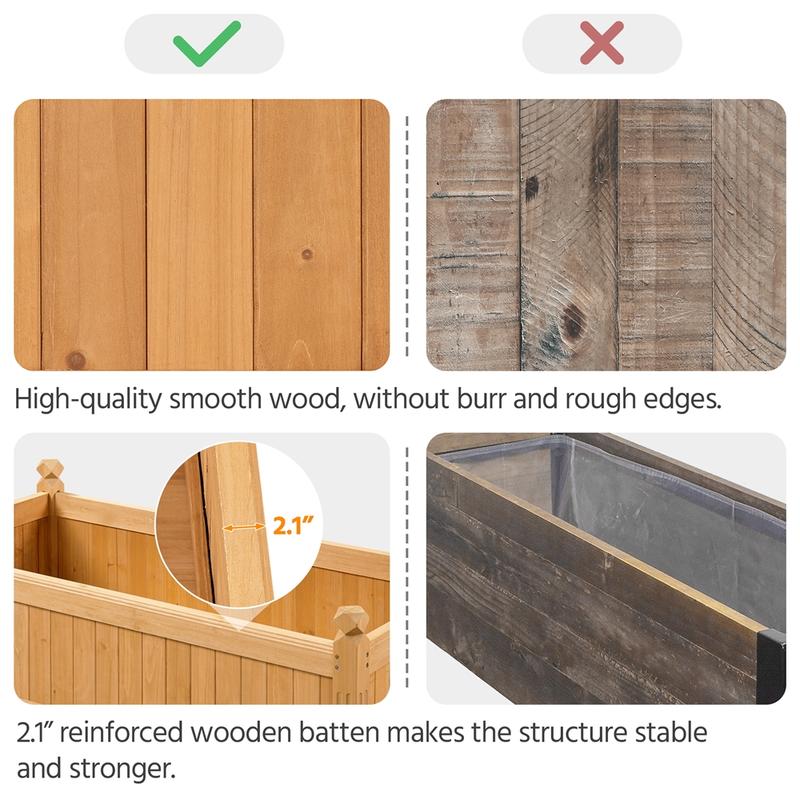 Each side is made from a single, continuous wood board—not multiple pieces—ensuring a firm, sealed structure that prevents soil from leaking out and enhances overall durability.