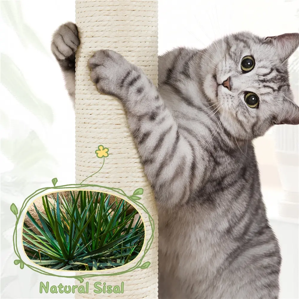 Equipped with two sturdy sisal scratching posts (15.7" & 12.4") that satisfy natural clawing instincts—helping redirect scratching away from sofas, carpets, and beds.