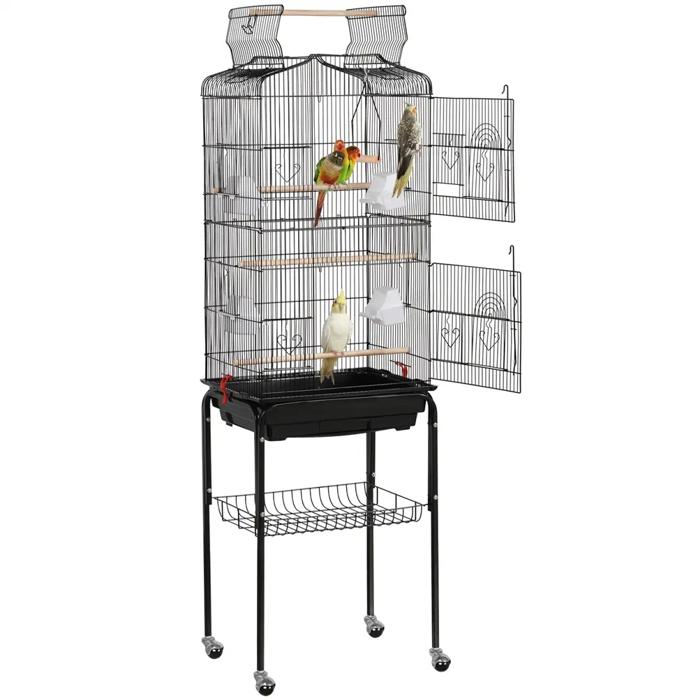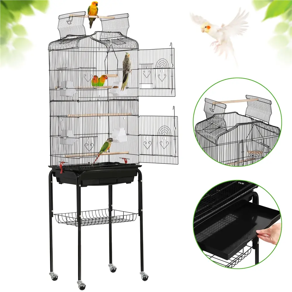 ·Versatile Open Top: This rolling birdcage provides an ideal spot for birds to perch and stretch their wings outside the cage.