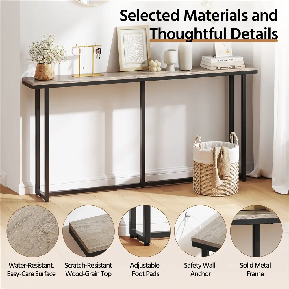 Ideal for city dwellers and families, this slim console table fits behind sofas, in hallways, or near entryways. The wood-grain top and matte black frame suit modern interiors. The stabilizing bar and wall anchors ensure safety in busy homes.