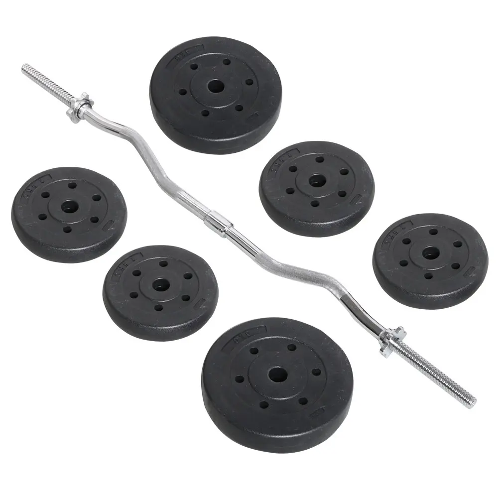 1. Durable and Sturdy: The concrete-filled weight plates are encased in a robust HDPE coating for added protection, while the curl bar is crafted from solid nickel-plated iron, providing enduring strength and reliable performance