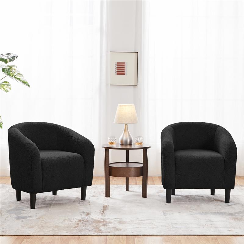 Blending a streamlined profile with subtle traditional curves, this boucle club chair delivers an elegant aesthetic that instantly elevates any seating arrangement. Built with a manufactured-wood frame, a soft-touch boucle exterior, and a medium-firm foam cushion, this barrel chair stands out for both its comfort and durability. Supporting up to 300 lb, it provides a reliable and sturdy seat suitable for users of all ages. The gently curved back and arm design add smooth, welcoming lines to your interior, making this chair an appealing spot for relaxation in the living room, study, or commercial spaces like cafƩs and hotels.