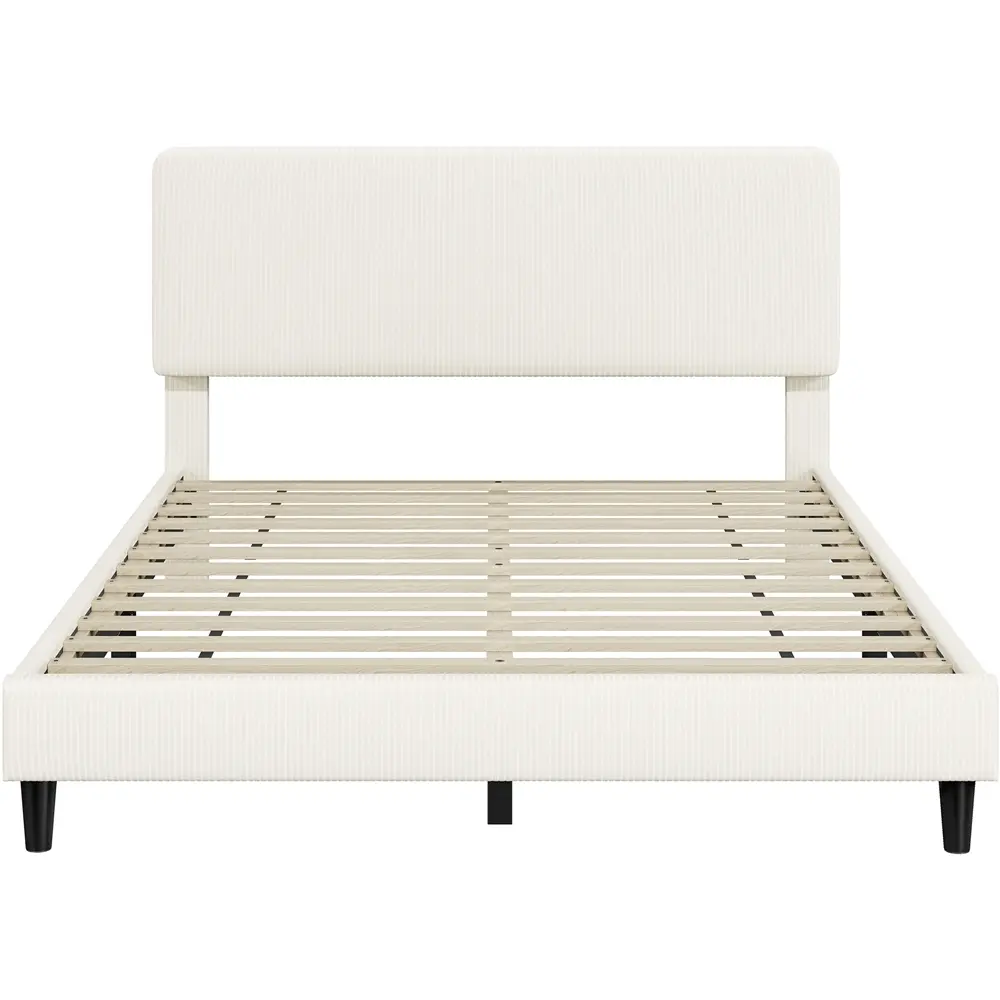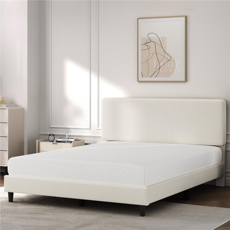 1. A Stylish Focal Point for Your Bedroom: This contemporary platform bed features a clean silhouette paired with a timeless upholstered headboard. Its minimalist, low-profile structure enhances visual appeal while blending seamlessly into a variety of décor styles.