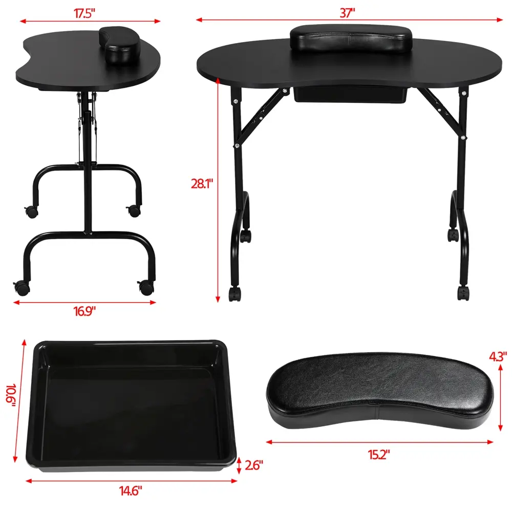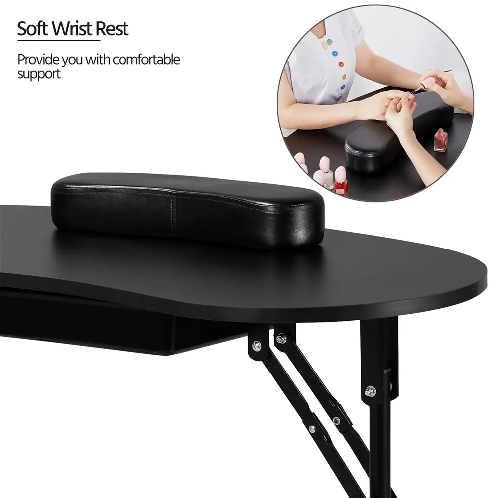 3. Ultimate Space-Saver: Limited space? No problem! The manicure table features a removable wrist cushion and collapsible metal legs. When you're done, it folds flat in seconds.