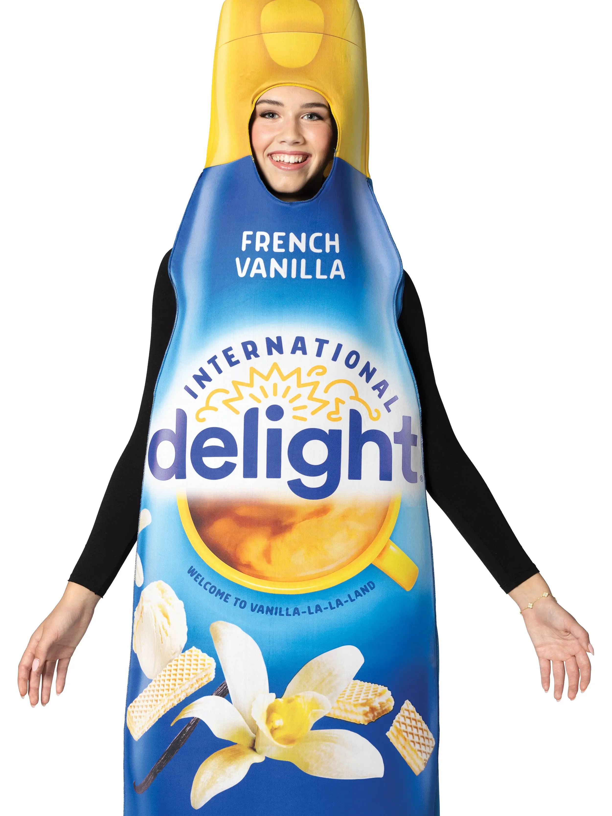 Welcome to Vanilla-La-La-Land, where vanilla reigns supreme! This International Delight French Vanilla Creamer Costume is a sweet, creamy dream where vanilla is the star of the show.
