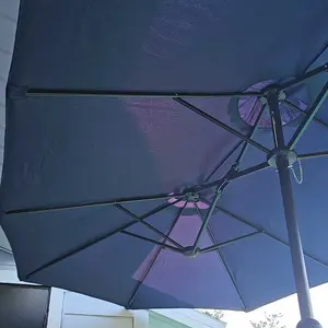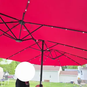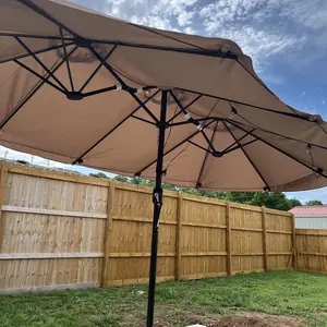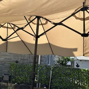 Crafted from high-strength iron, this twin patio umbrella is built for durability. The surface is powder-coated, effectively preventing rust and extending its service life. All parts are included, and assembly is straightforward. This ensures a long-lasting, reliable product for your outdoor needs.