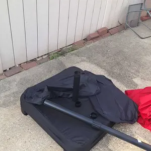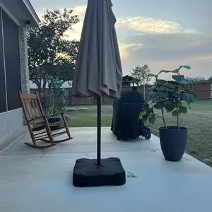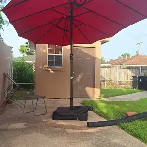 The umbrella comes with an extra-enhanced stand, featuring a sturdy metal frame and 2 weighted sandbags. These can weigh up to 180lbs when fully filled, providing great support. The external cover keeps the sandbags tidy. This ensures the umbrella stays secure and stable in any weather.
