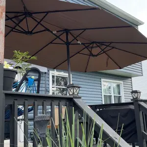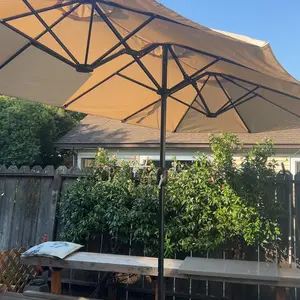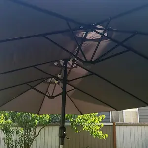 ·Easy Operation & Folding: Equipped with an easy-to-maneuver crank handle, the twin table umbrella can be fully opened with ease. And there is a safety lock to keep the outdoor market umbrella securely opened. With a fixing strap, the large patio umbrella can be easily folded and stored when not in use.