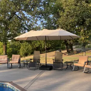 ·Extra Weighted Fillable Base: To further stabilize the extra large patio umbrella, there is a cross base, which can be filled with 66lbs sand to increase weight. You can install the stand frame, fill the 2 sandbags and attach the cover in short time to obtain a umbrella base.