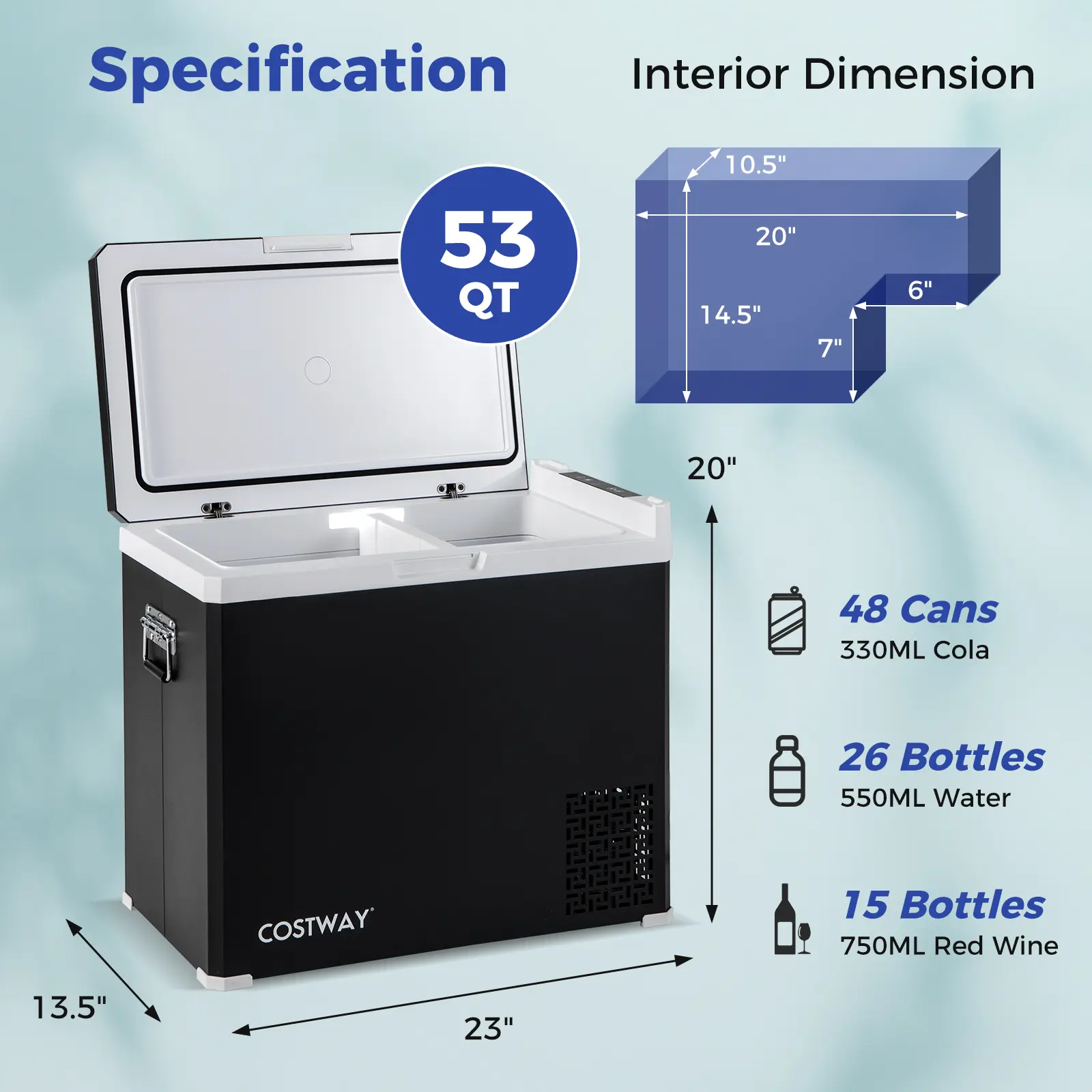5. COSTWAY - 2-in-1 Dual Zone Car Fridge 53QT Portable Freezer and Refrigerator