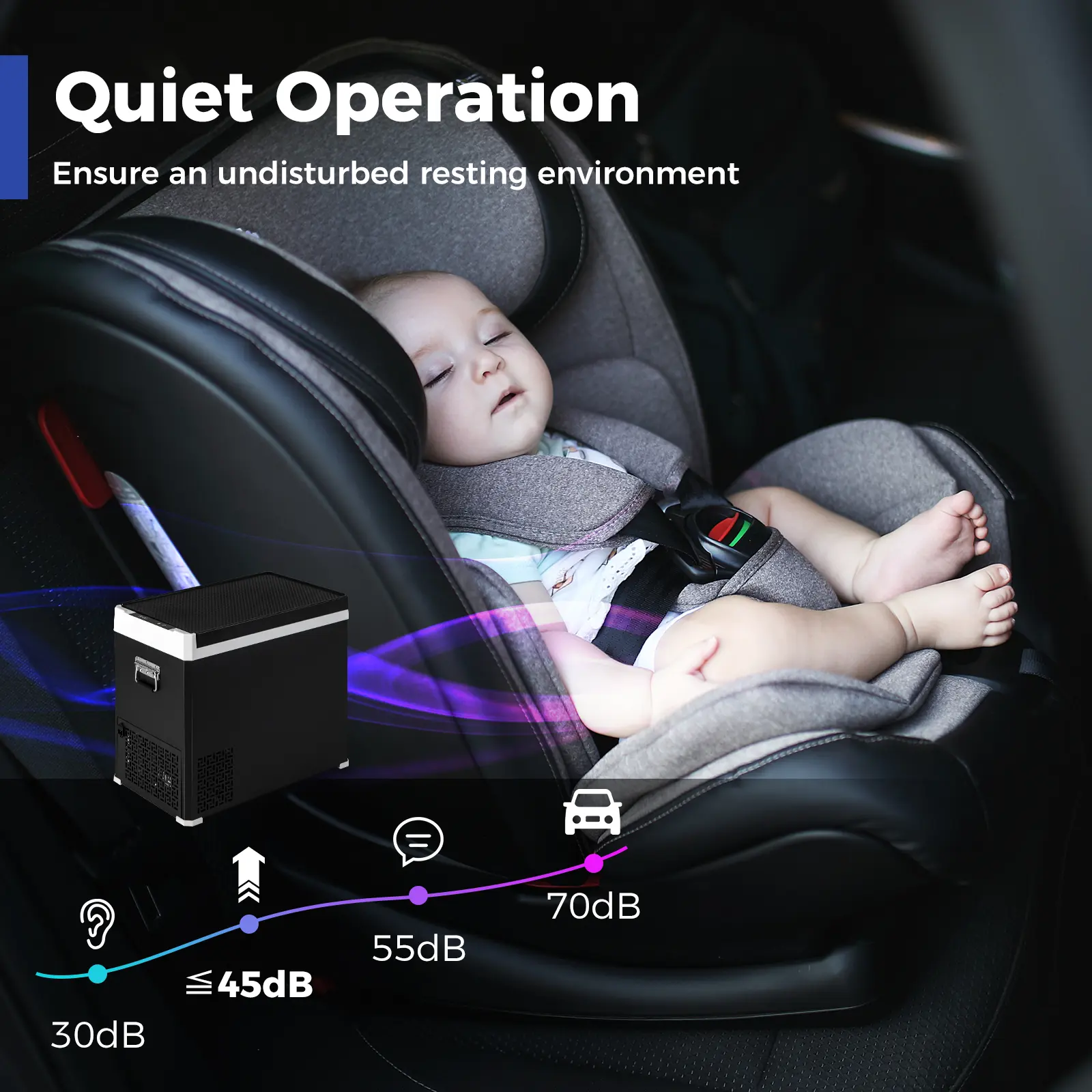 ● Two Zones, Perfect Temperatures: The 53QT dual-zone car fridge features a removable partition, allowing you to split it into two independent compartments. Set one side as a freezer (-4℉) and the other as a fridge (up to 68℉)—ideal for keeping ice cream frozen while chilling drinks. ● Custom Cooling for Different Needs: Each zone has independent temperature control, so you can store meats, dairy, beverages, or snacks at their ideal conditions. No more compromising—everything stays fresh exactly how you want it. ● Spacious & Organized: With a large 53QT capacity, there’s plenty of room for all your essentials. The secure-seal door latch locks in cold air, while the built-in LED light makes nighttime access easy. Perfect for camping, road trips, or tailgating. ● Energy-Efficient & Travel-Safe: The 3-level battery protection prevents over-discharge, and the ECO mode keeps power usage under 1 KWH/day. Whether plugged into your car or a portable battery, this fridge keeps your items cold—your way.