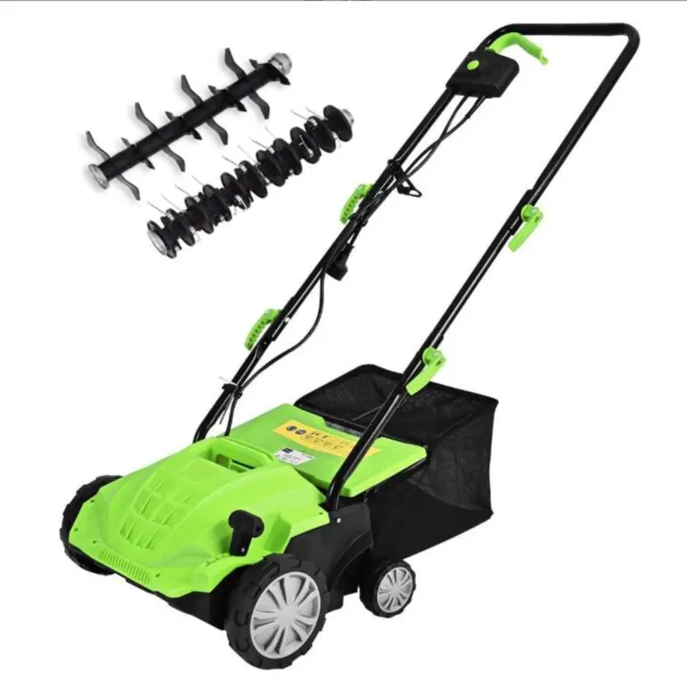 • Corded Electric Scarifier: This scarifier will rack 15" to get the heavy mowing and scarifying work done quickly. You can change the blades quickly in a couple of minutes. In addition, this unit has a storage bag of 50L for automated weed collection.