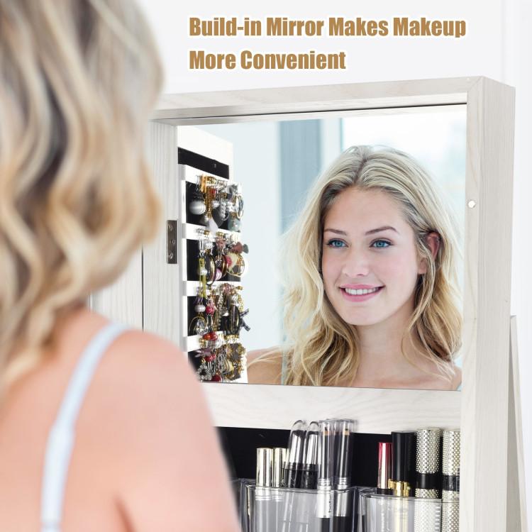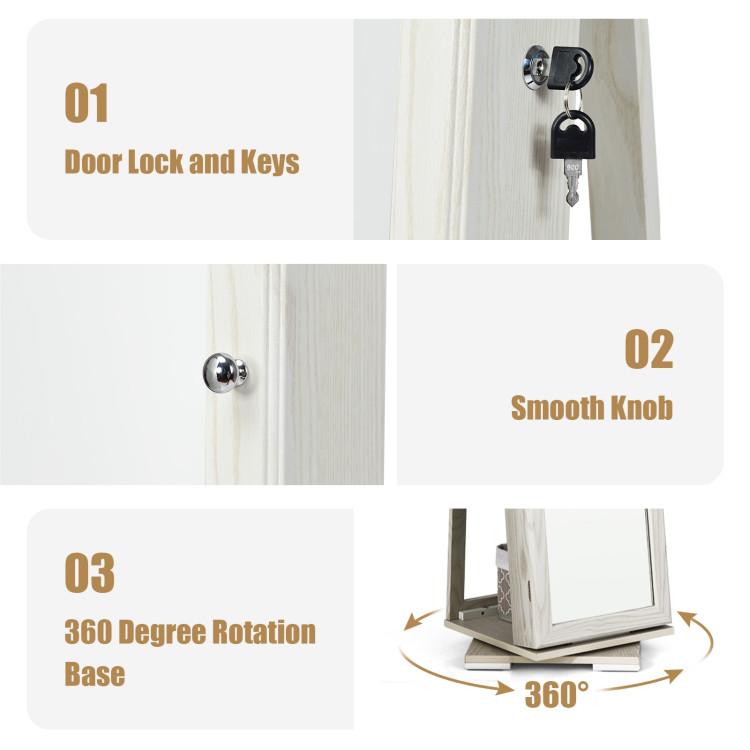 ·[2-in-1 Mirror Jewelry Armoire]: Enjoying the dual benefits of jewelry armoire and mirror in this cabinet, this freestanding jewelry cabinet will give you a lot of fun of dressing up. Higher full length mirror offers you a head-to-toe view of your outfit in real image and you can storage all jewelry in order with this jewelry armoire.