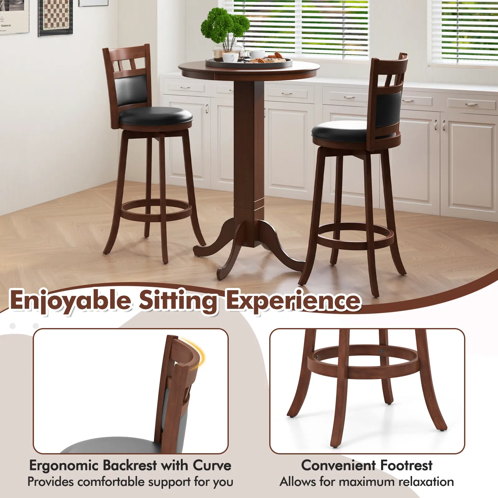 5. COSTWAY - Wood Swivel Bar Stools Set of 2 with Faux Leather Upholstered Seat and Back-Brown
