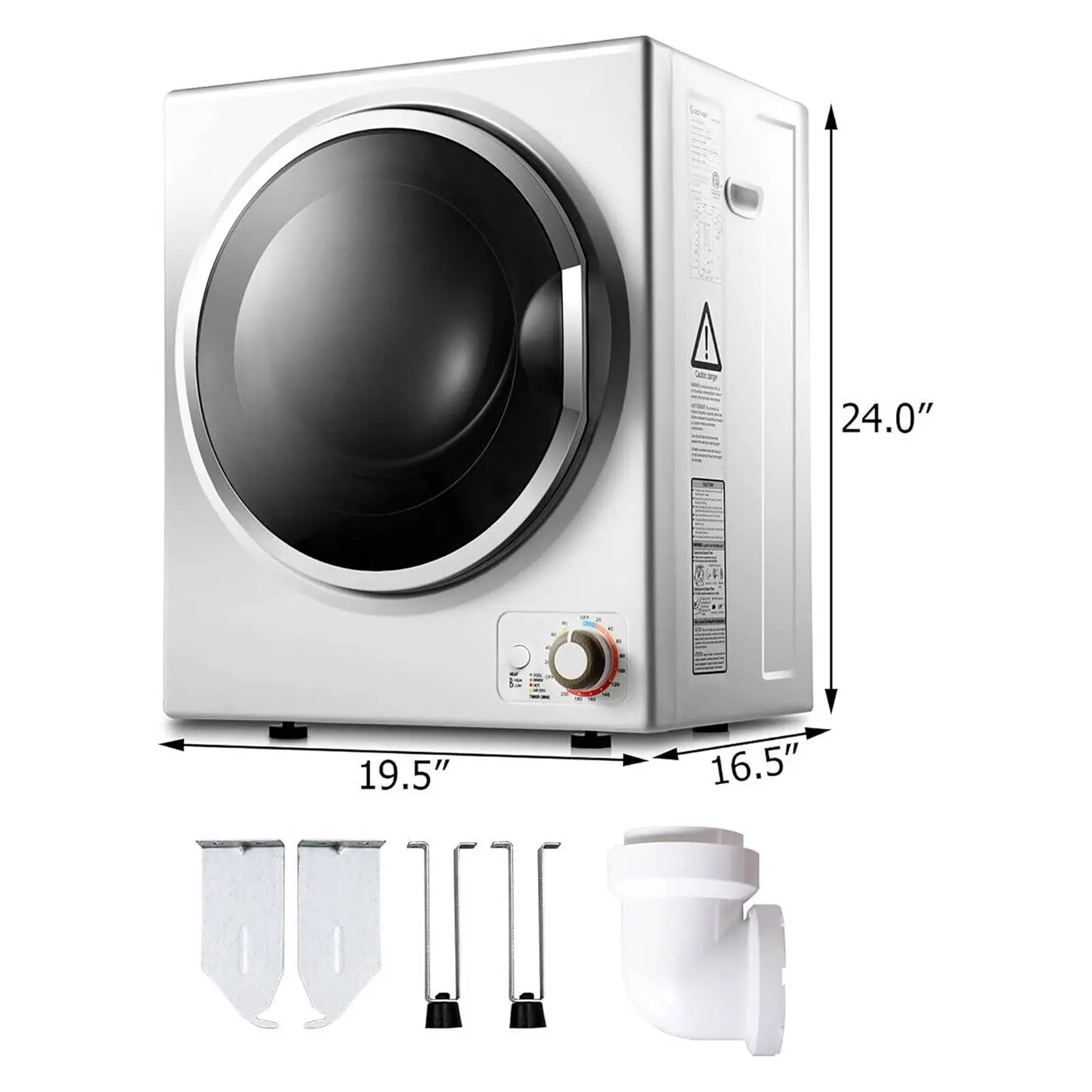 ·Durable DesignThe stainless steel tub ensures durability for long-term use. Includes: 1 dryer, mounting brackets, spacers, exhaust connector, screws, and instructions.
