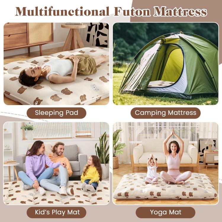 5. COSTWAY Japanese Floor Mattress, 4 Inch Futon Mattress with Washable Cover & Storage Bag, Foldable Roll up Mattress Tatami Mat, Portable Sleeping Pad for Camping, Dormitory, Twin/Full/Queen/King