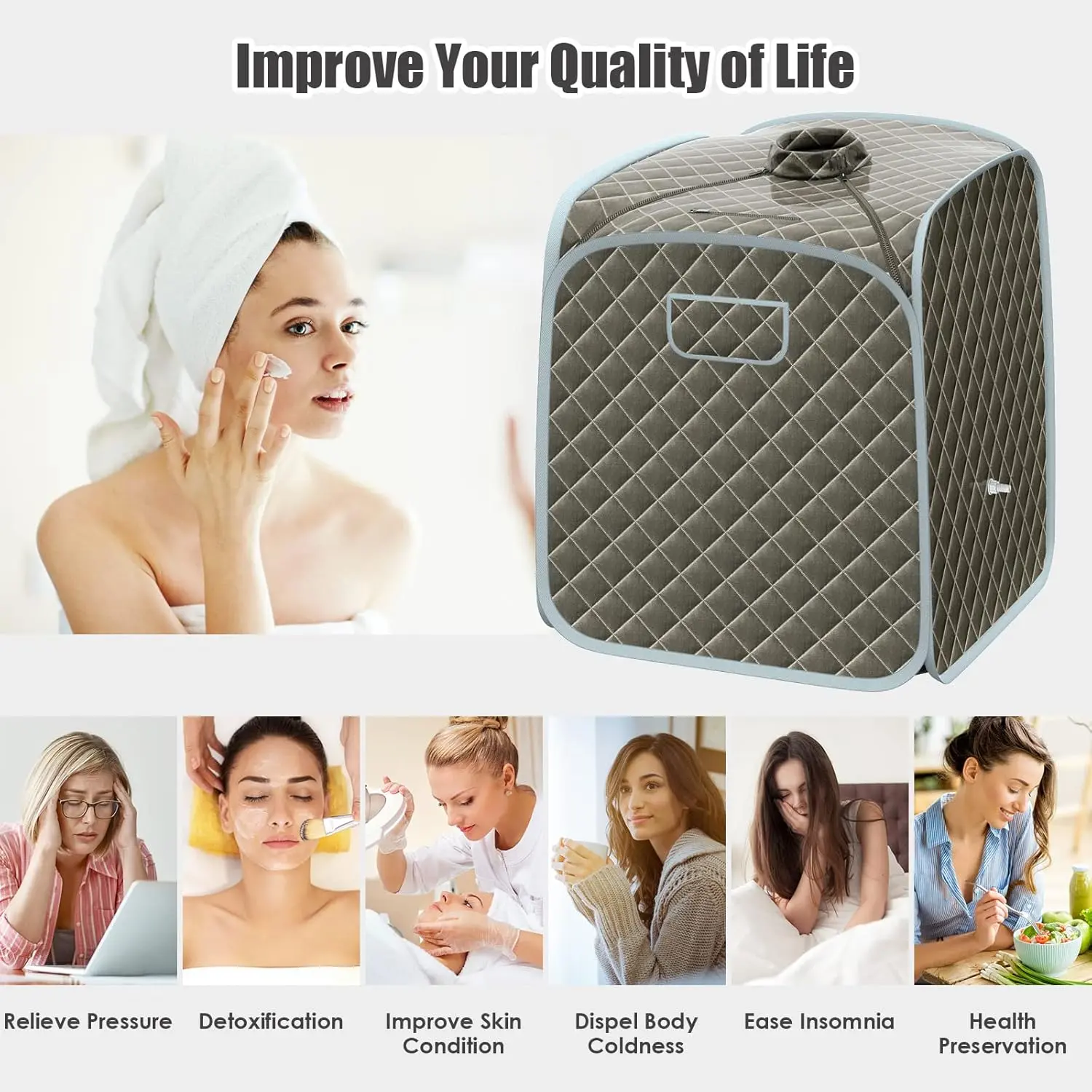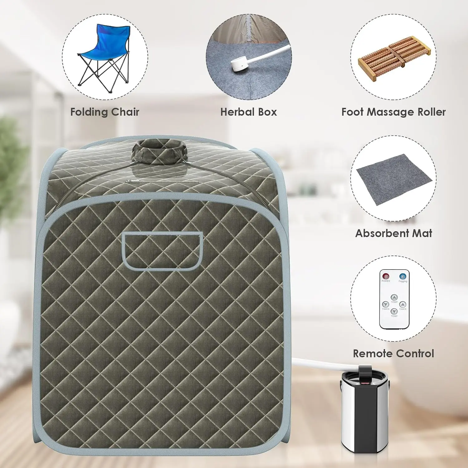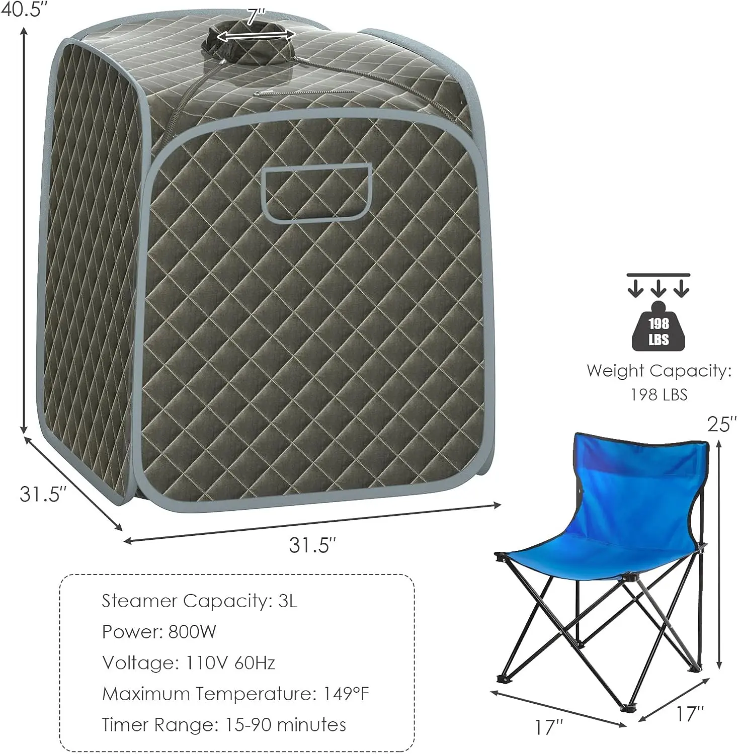 ·【Adjustable Temperature & Timer】Our steam sauna is equipped with a remote control which can make you customize your personal sauna spa easily. It comes with 9-gear adjustable temperature (maximum to 149°F) and 9-level timer(ranging from 15 to 90 minutes). The 800W strong power makes it possible to quickly enjoy wonderful relaxation.