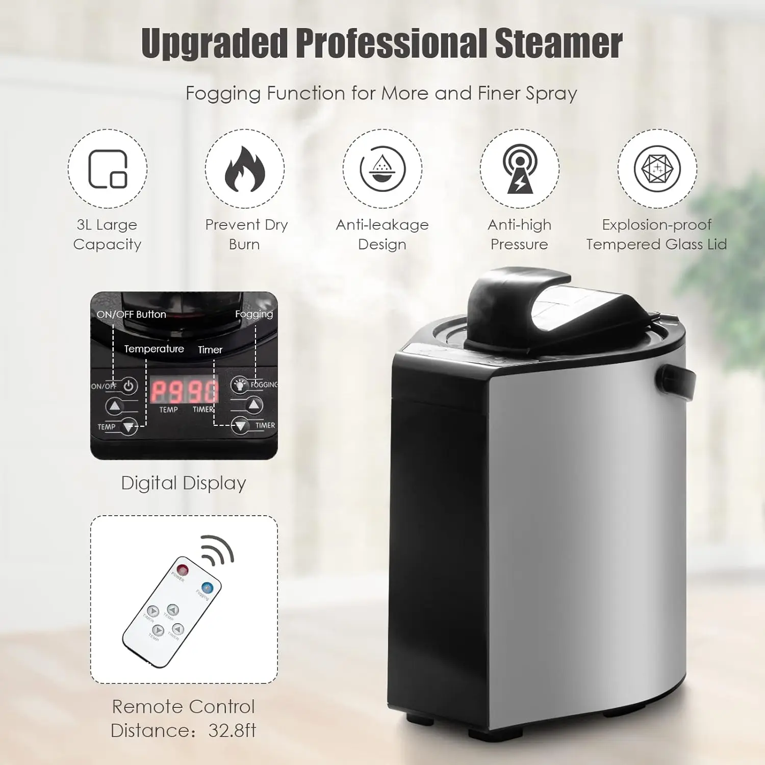 ·【Blast-proof Steamer with Atomization Function】The 3L large capacity steamer with tempered glass lid is explosion-proof, leak-proof and anti-dry. And it has automatic power-off protection, digital displays and remote control, offering you convenient steam experience. The atomization function brings finer and more spray.
