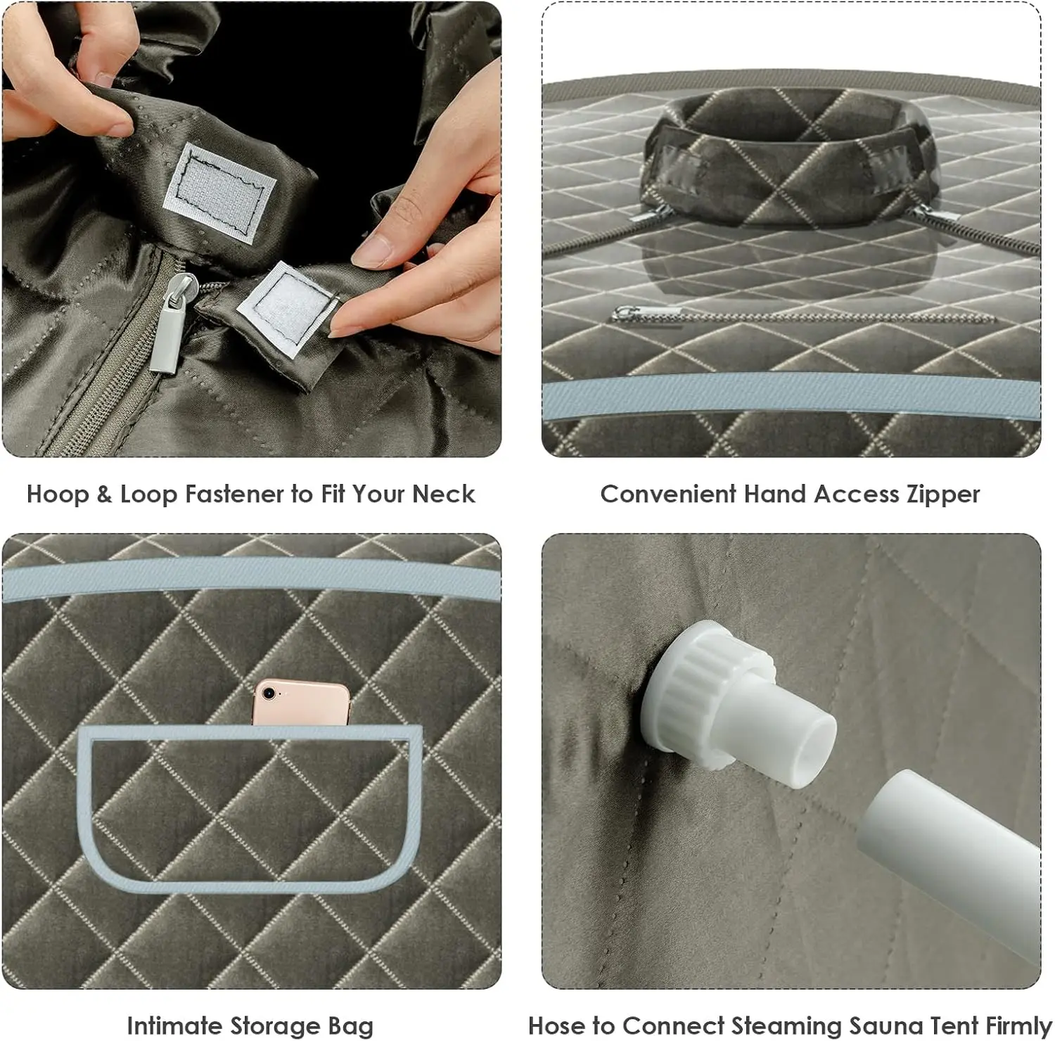 ·【Considerate Details & Accessories】The sauna is equipped with folding chair, absorbent mat, herbal box and foot massage roller. You can add herbs or essential oils into the herbal box for better enjoyment. Besides, the folding chair is also practical for outdoor activities, such as camping, picnics and fishing.
