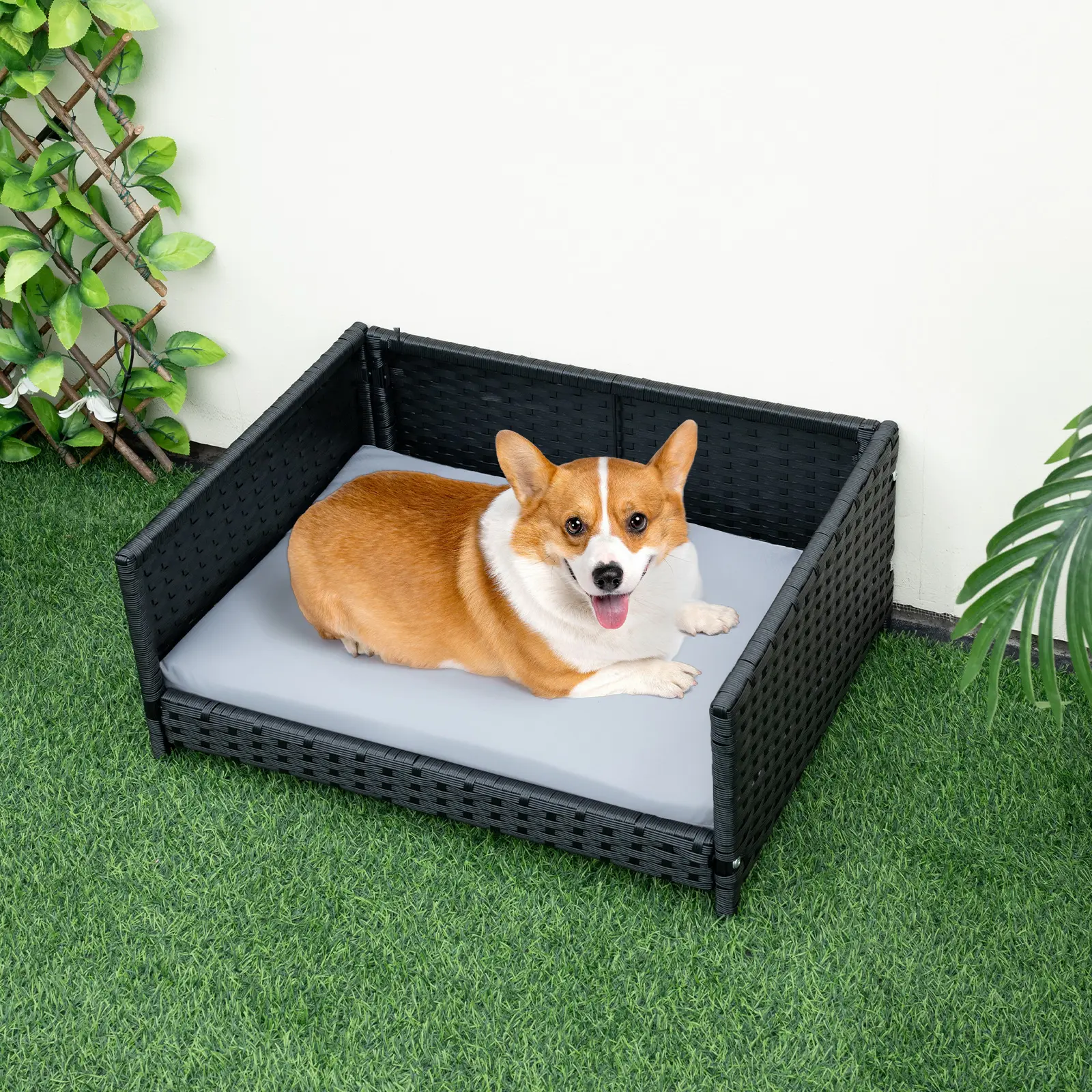 COSTWAY - Rattan Dog Bed with Waterproof Soft Cushion for Medium Small Dogs Cats-Gray