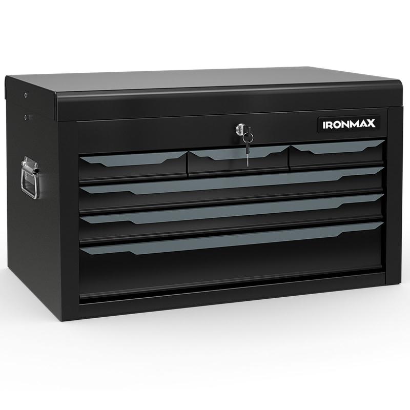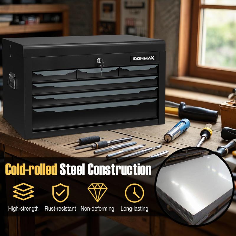 ·6 Drawers and Top Storage: The 24”L x 10.5”W x 14”H tool chest features a wide top storage compartment, perfect for storing larger tools or frequently used items. With added 6 drawers of varying sizes, you can easily categorize your small hand tools or measuring tools.