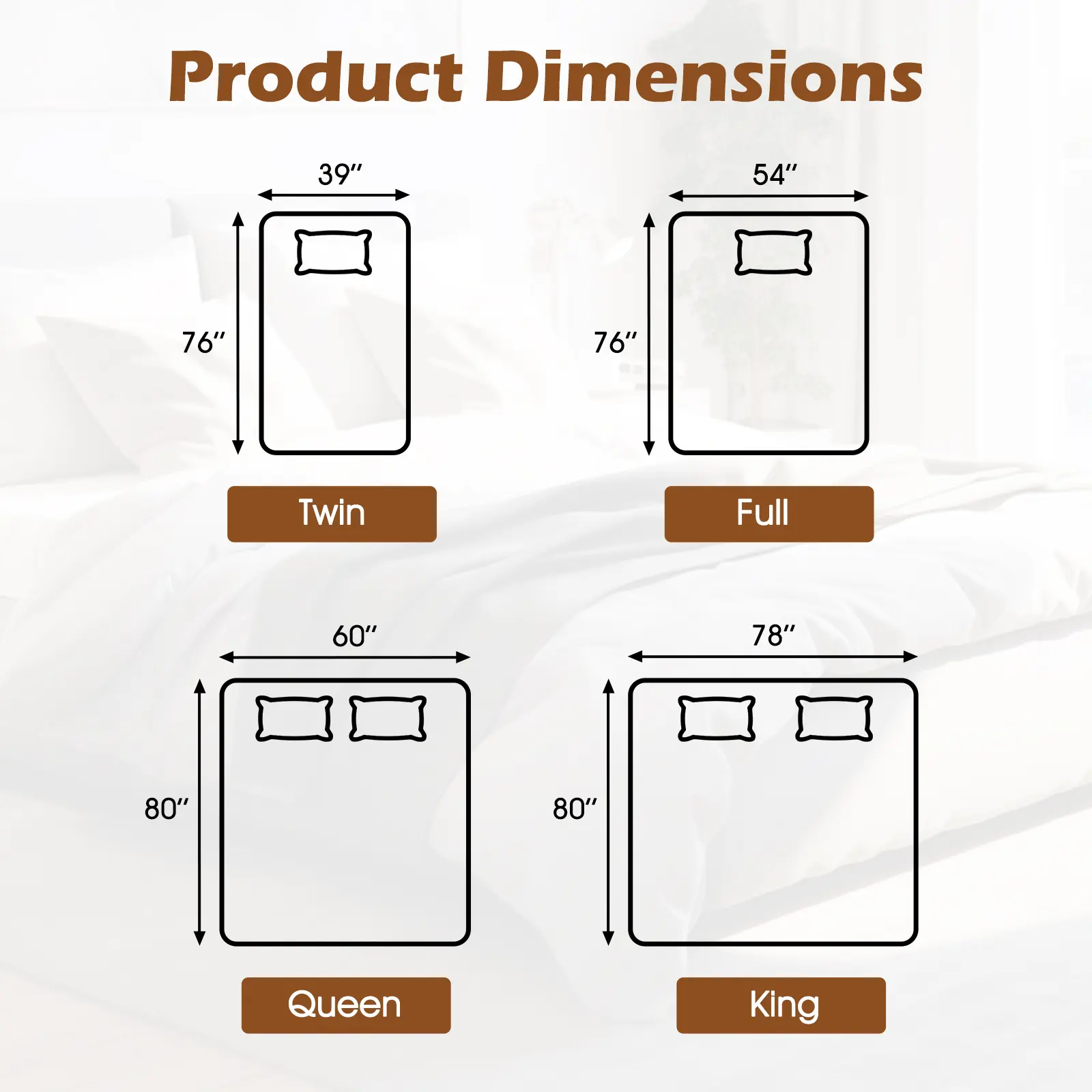 ● Dual-zone Control: This heated mattress pad features dual controllers, allowing you and your partner to independently adjust the temperature and time on each side of the bed. Each controller has a 1.6 ft cord for effortless bedside accessibility, and the 5 ft power cord provides ample reach from your outlet.(Full, Queen, King only) ● Convenient Controller: This heated mattress pad features a convenient controller with a clear LED display, making it easy to adjust the temperature and timer settings even in the dark. The controller has a 1.6 ft cord for bedside accessibility, and the 5 ft power cord provides ample reach from your outlet. ● 9 Heat Settings: This electric bed warmer is designed with 9 heat settings and equipped with a built-in thermostat, ensuring a cozy and customized warmth that meets your specific comfort needs throughout the night. ● 9H Auto Shut-off: This heated mattress pad includes a versatile timer feature that can be set from 1 to 9 hours, allowing you to enjoy controlled comfort that shuts off automatically. It's designed to conserve energy and maintain safe use every time. ● Safety First: With advanced safety features, including overheat protection and short-circuit protection, this mattress heating pad prevents any potential overheating or electrical faults to ensure a safe and worry-free environment. ● Easy to Fit and Clean: Featuring 4 electric straps, this electric heating pad accommodates up to 10 inches of mattress (not included) depth. Moreover, this bed warmer is machine washable. Simply detach the controllers and follow care instructions for easy maintenance.